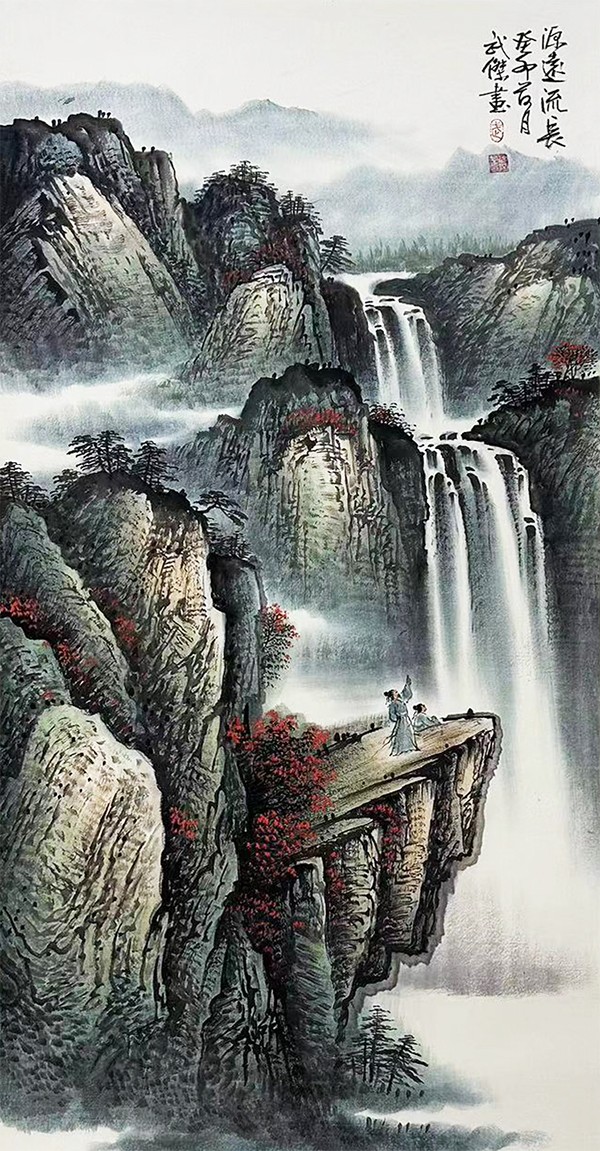 武杰1967年生于国画世家,幼承家训,曾就读河北美术学院,中国国画院,清华美院绘画高研班。有幸拜师齐白石的儿子齐良迟学习绘画技巧并坚持研习中国绘画近40年多年,曾以山水、金墨虾、花鸟山水为主题,创作大量中国画作品。武杰老师作品博采古今之长,融合现代画与仿古山水绘画特点, 逐渐形成清新、自然、律动、秀畅的风格。呈现了传统文人画的追求,他的作品立意、章法、设色,笔墨上都十分考究,用笔、用墨细腻精致,他的作品有小桥流水、渔歌唱晚,有林泉高致,有采菊东篱,高山明月,清风流水,共日月风华,共朝晖夕阴,完美呈现了人在林泉中的精神安顿。他的山水画是典型的南派山水,有着南派山水的秀雅之姿、端庄之态,作品“可行、可望、可游、可居”,显现出游园般身临其境的审美趣味,使观画者获得更为丰富的意趣,意犹未尽耐人寻味。
