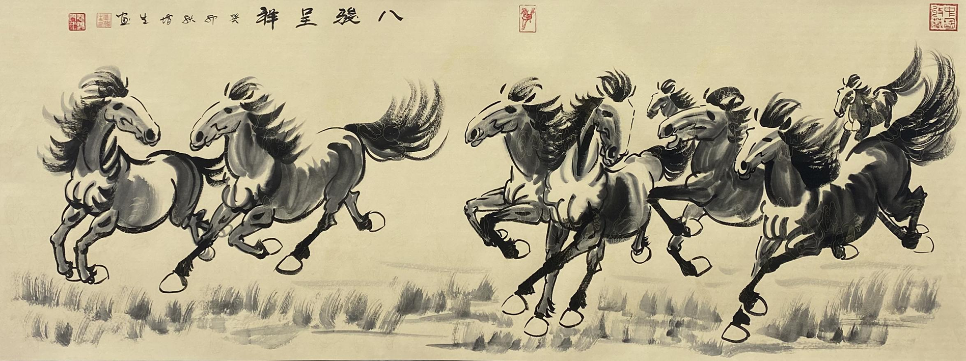 国画作品《八骏雄风》