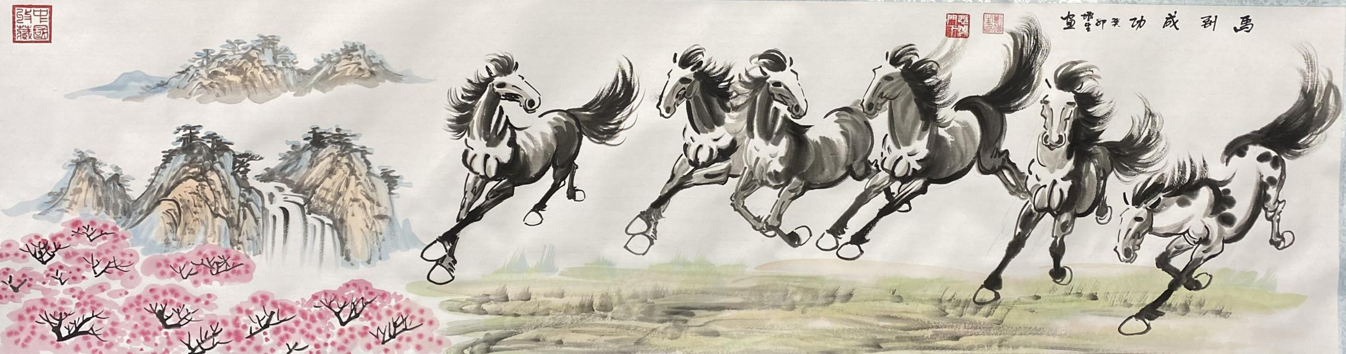 国画作品《八骏腾飞》
