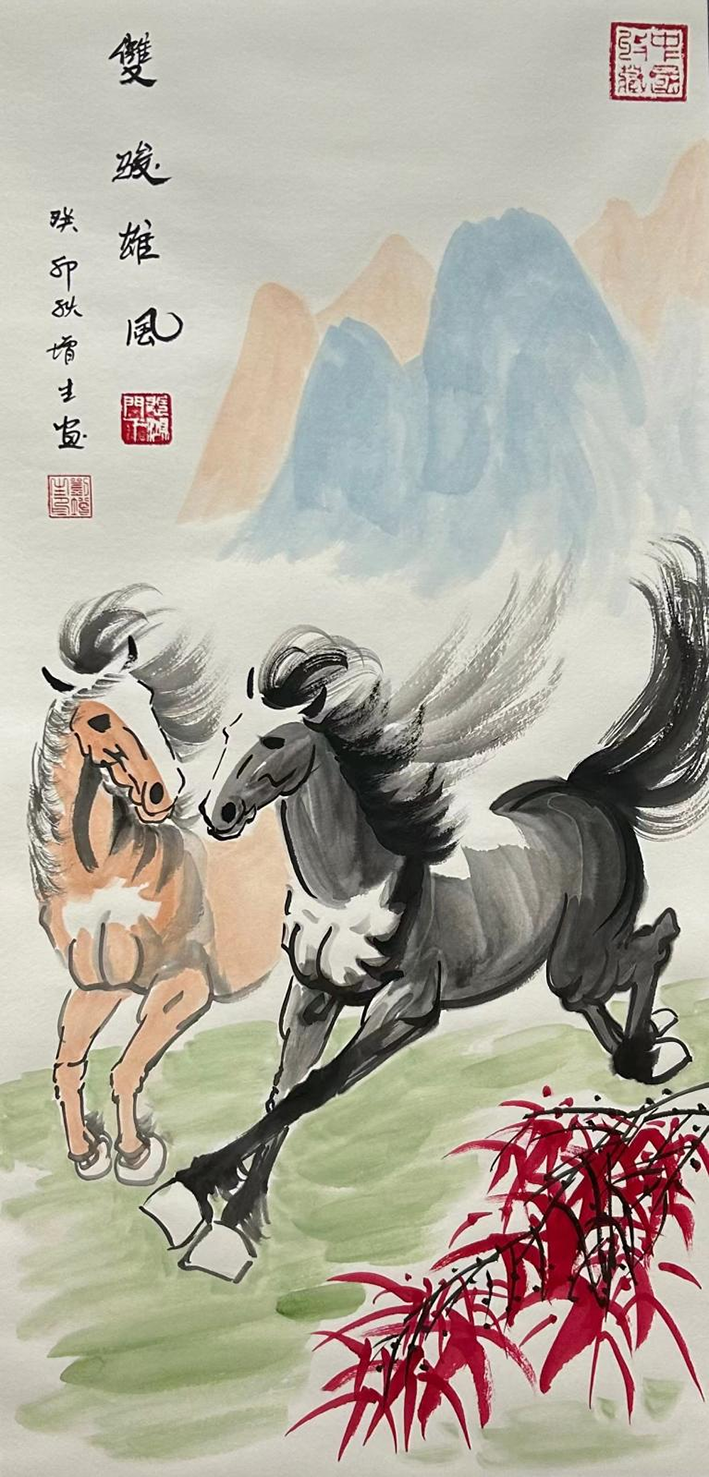 国画作品《双骏雄风》
