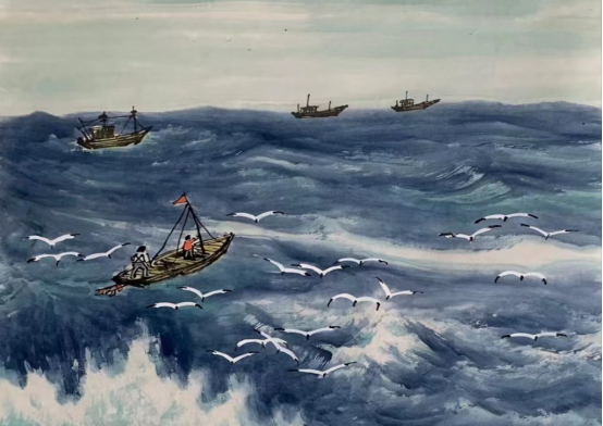 感和强烈的社会责任感。作品中西结合,创新发展,艺术风格各异,大气磅礴,意境深远,创造了中国海洋绘画的艺术特色。进入二十一世纪,中国经济腾飞,全球经济一体化,发展海洋经济成为全球经济发展的共识。海洋文化随之发展起来,与海洋相关的文化艺术门类与种类不断扩大,海洋画派作为海洋文化的组成部分使海洋文化内容不断丰富。