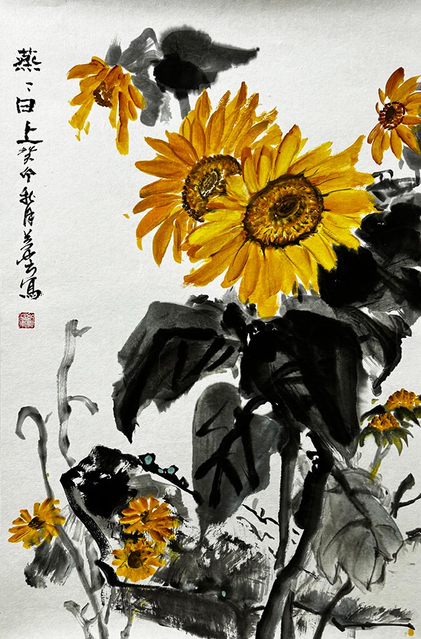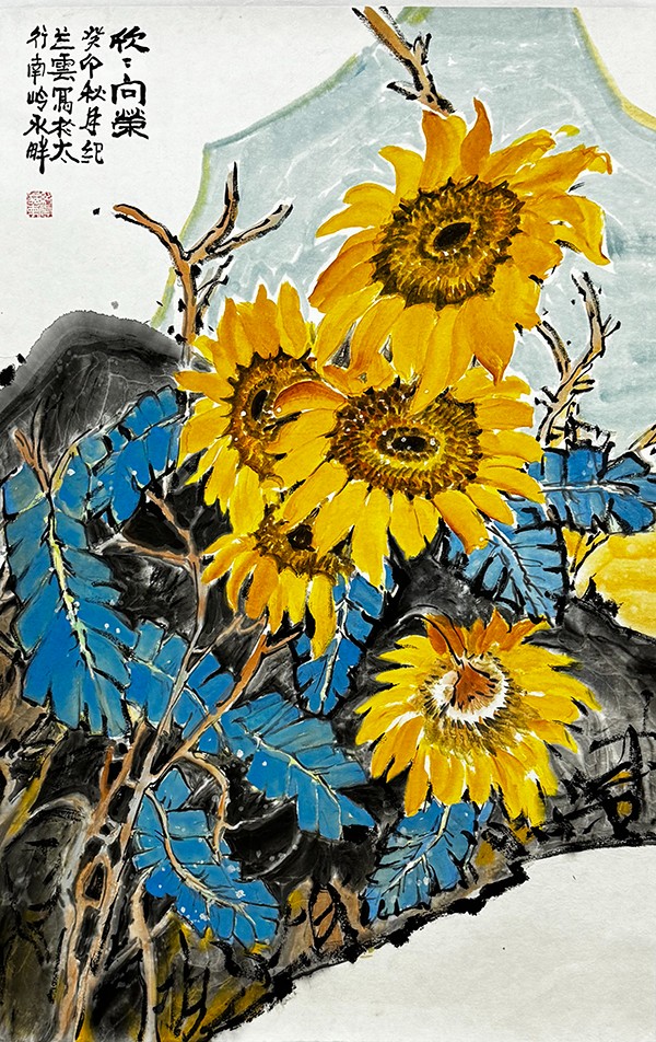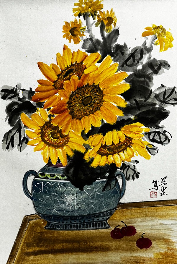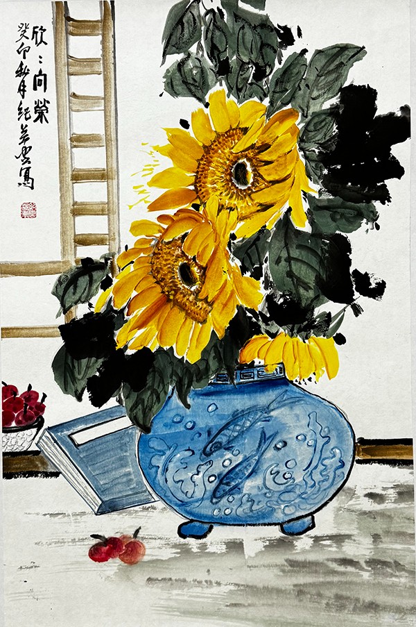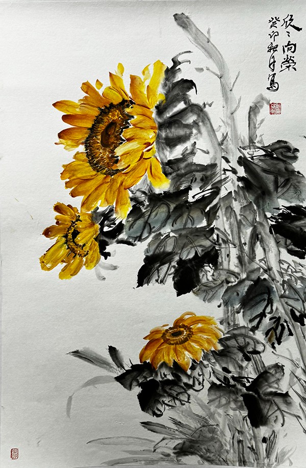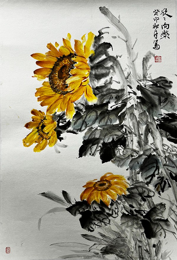 在中韩艺术交流会上,其作品《欣欣向荣》被韩国友人以八百万韩元收购。