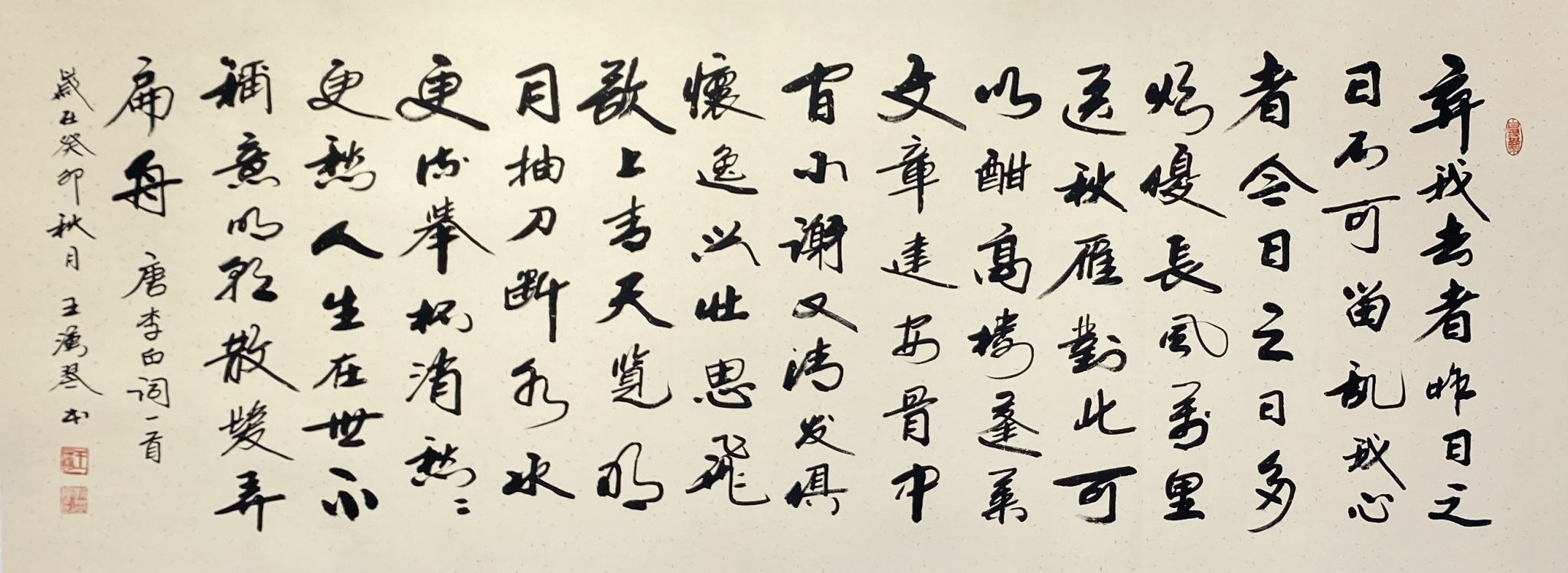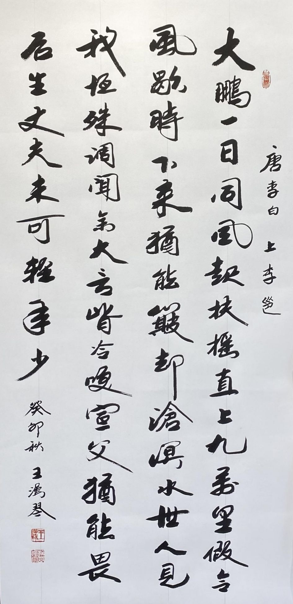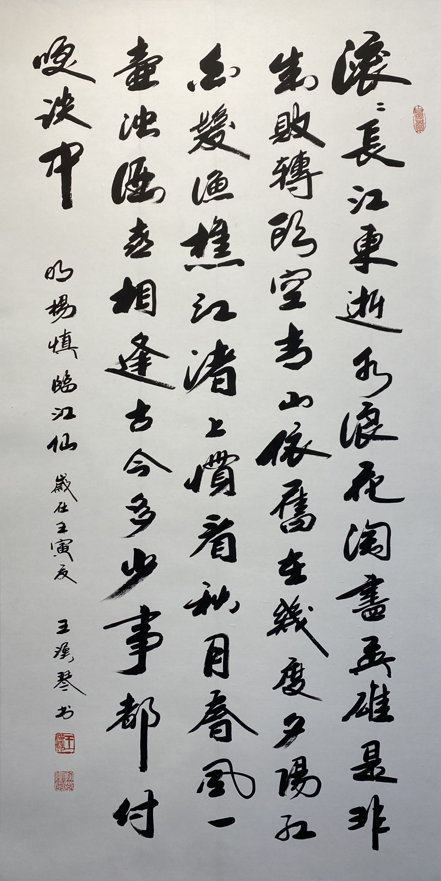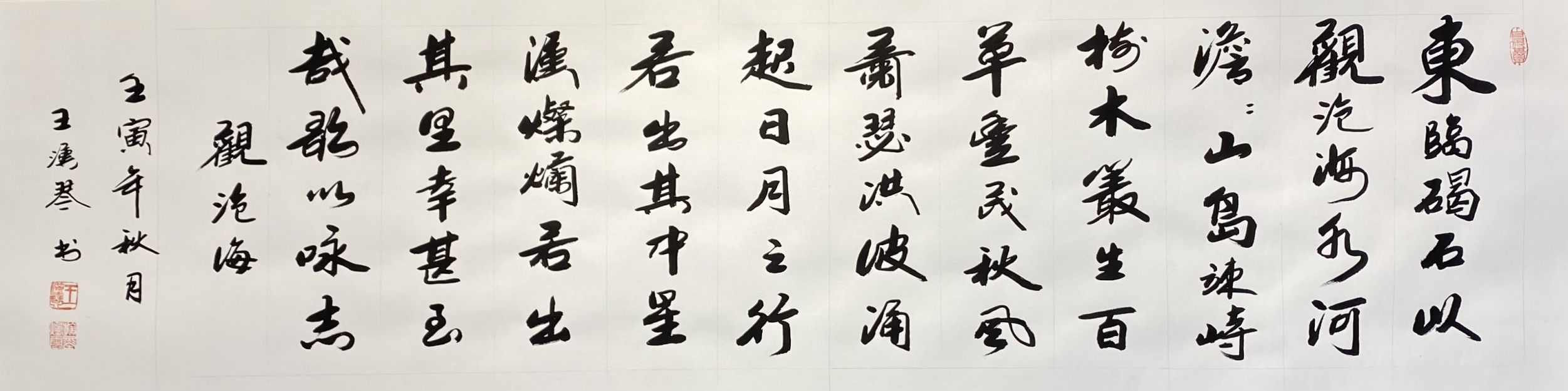 王汉琴先生的行书作品,从用笔、结构到通篇的章法,规律法度尽在自然和变化之中。这得益于王汉琴先生高深的修养和精湛的笔墨功夫。