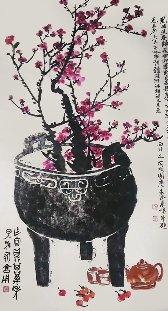 自幼学习中国传统书画艺术,艺术风格受齐白石、吴昌硕等近代书画大师影响,笔墨取古法古意,功力深厚,用彩鲜明却不失静雅之意,作品高古、朴实,气势浑雄而意蕴悠远。其写意国画作品被海内外艺术机构和个人收藏。