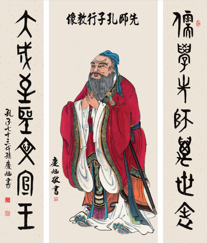 先生出身于书香门第,儒教世家,自幼深受家庭熏陶,习读先祖孔子论语、史书。擅长甲骨文、金文、花鸟画、人物画的研究,追古溯源,其画风潇洒飘逸,灵活多姿,用笔遒劲,刚柔相济,古朴率真,格调清雅,独俱神韵。与齐白石、张大千并称为中国最贵三大家,作为人物画奠基人,先生研学工笔国画,塑造先祖孔子重彩画像,画面先祖形象神采奕奕。作品编入《纪念孔子诞辰中国国际书画大展作品集》、《金文书法集萃<论语>篇》(2022年8月河北出版集团、河北美术出版社出版发行)。