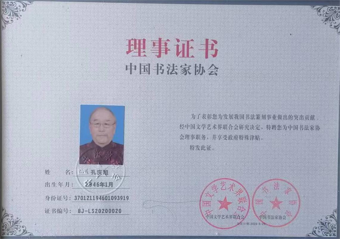 孔庆旭,孔子后裔第七十三代嫡孙,现为文化和旅游部国家一级美术师,国家一级书法师,中国文化传播大使。中国文化艺术界联合会特聘为中国书法家协会理事职务。
