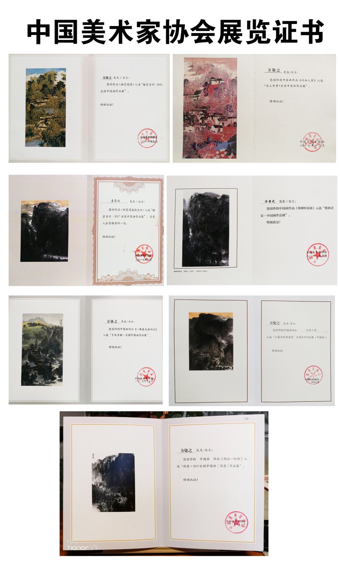 作品《幽篁古韵》入选2016年全国中国画作品展,《幽篁闲居》入选首届中国翰墨青州2016全国中国画展,《晨曦》入选2016我爱丹青全国中国画展,《彩霞清溪绕太行》入选2017翰墨青州中国画作品展并获奖,《一缕春色染侗乡》入选2017乡风墨韵中国画作品展,《竹林人家》入选2017泾上丹青中国画作品展,《雨后一时新》入选尚意2017中国画(写意)作品展,《倚树听泉流》入选2018墨香沼安中国画作品展,《山里人家》入选2018入蜀方知画意浓全国美术作品展。