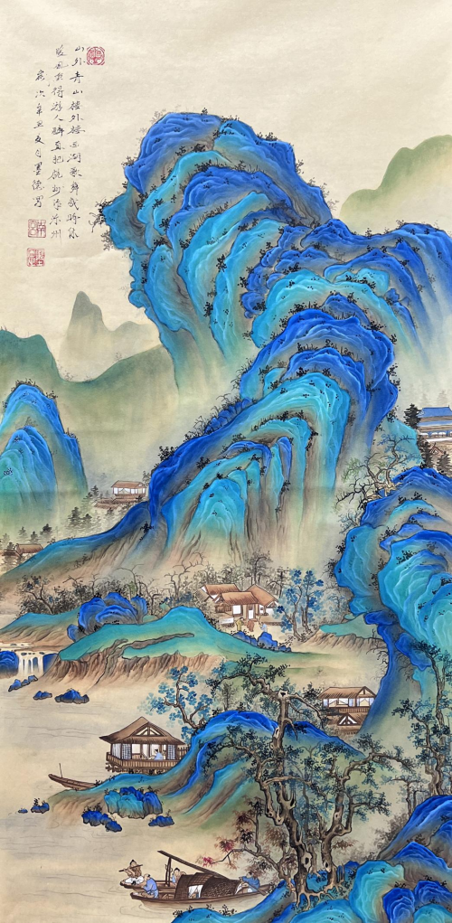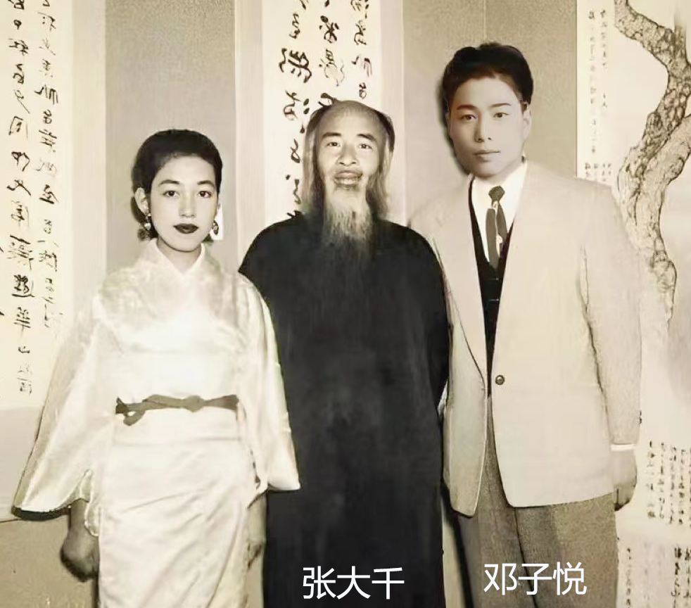 1974年时年75的张大千在香港大会堂举办画展,台北历史博物馆与“日本民族协会”共同主持东京中央美术馆“张大千画展”。此次画展中一位年仅23岁的青年打破了展览所带来的宁静吵杂声中引起了张大千的注意,这位少年便是日后影响国际艺术品走向的邓子悦先生。此时邓先生手提一幅自己临摹的千里江山图引起了前来观展的各界名流重人哗然,当大千先生走向前后面对邓子悦先生手中作品深有感叹,感受到了年轻时的自己,而在邓先生眼中这样一位被誉为“东方之笔”的老者确翘首以盼,因为他深知对面的这么先生就是仿古山水第一人张大千,其手中作品更可以假乱真。让行业者望而却步。
