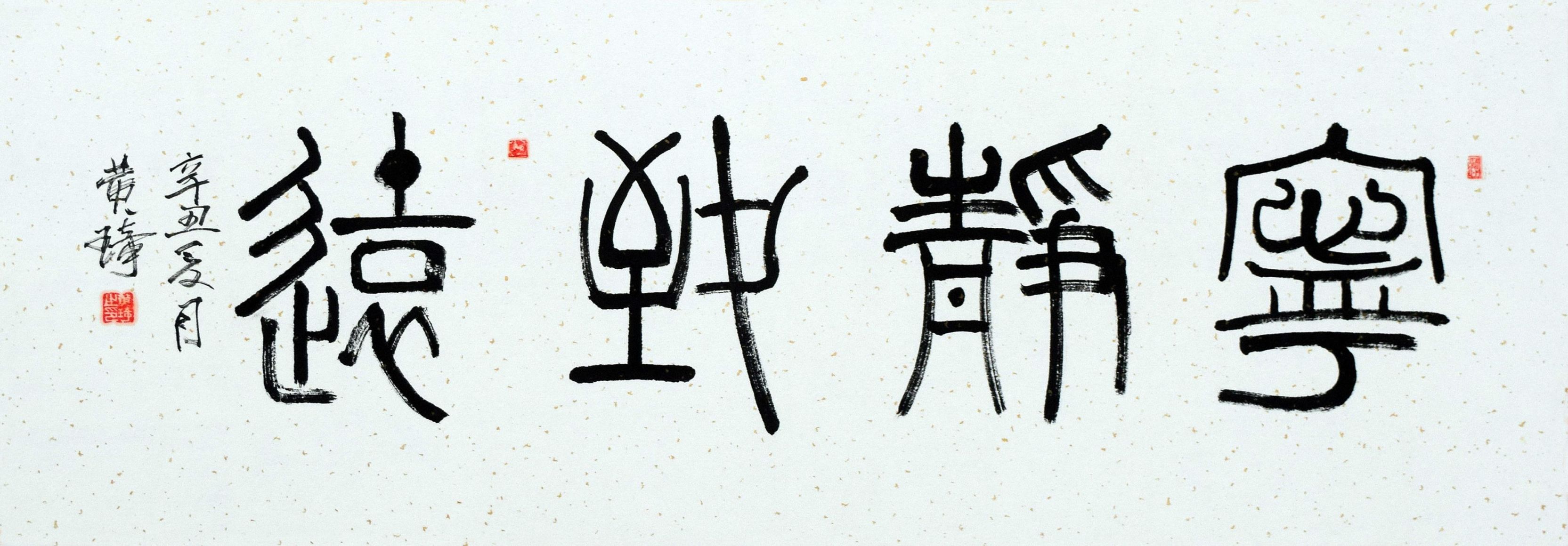特别需要一提的是,黄琦的隶书作品独树一帜,意味最神。他的隶体,基于汉隶之功,独创风逸之形,隶体临风,仪态如妃,醉美动人。比如《讷言慎行》一幅,波折之美,更富时尚,端华韵形,已胜旧体,笔笔如珍, 字字如珠,创新求变的意象十分鲜明,这也是黄琦书法造诣能雄踞中国书坛高峰的重要佐证。(史峰先生评语)