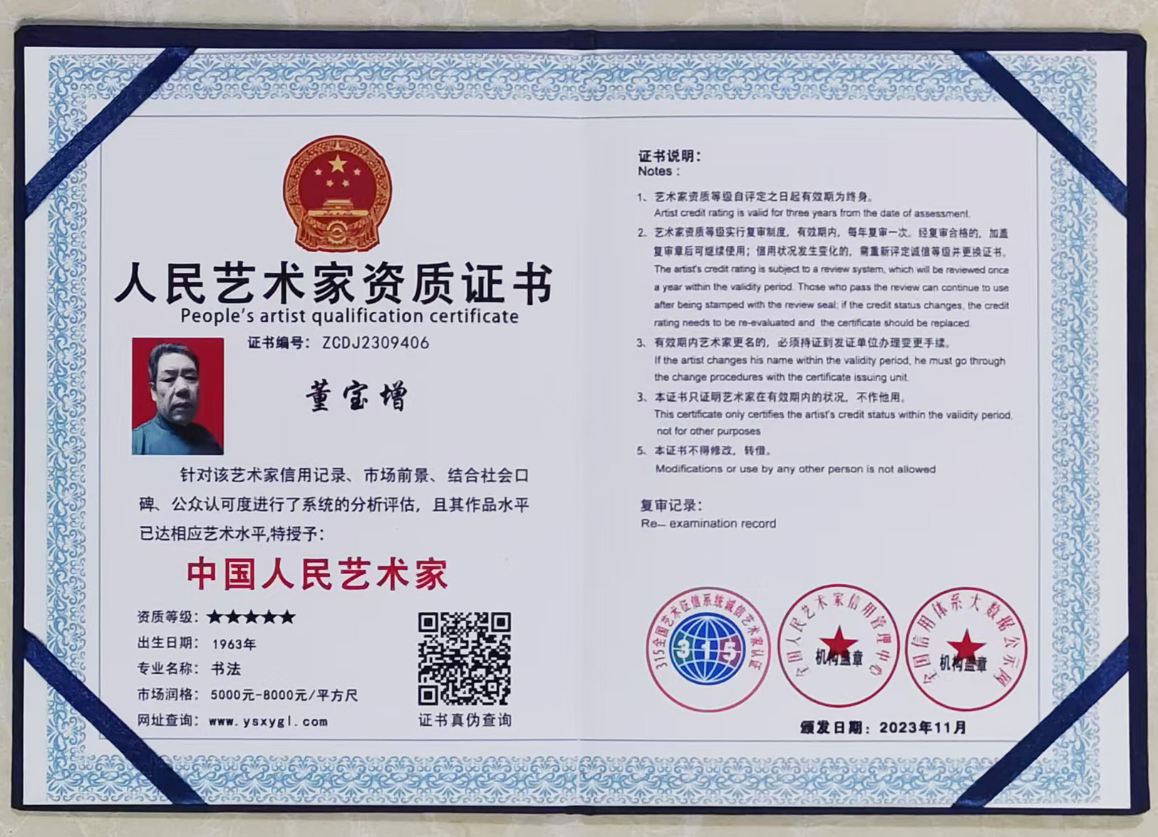 董宝增,男,1963年生于河北白沟,中国书画家协会会员,中国书画家联谊会会员,中国白溪书画院特聘书法家,中国山东白溪书画院会员,河北省采风学会会员,中国白溪书画院白沟分院院长、北京华夏国艺书画艺术中心会员、北京巨匠丹青书画院院士。