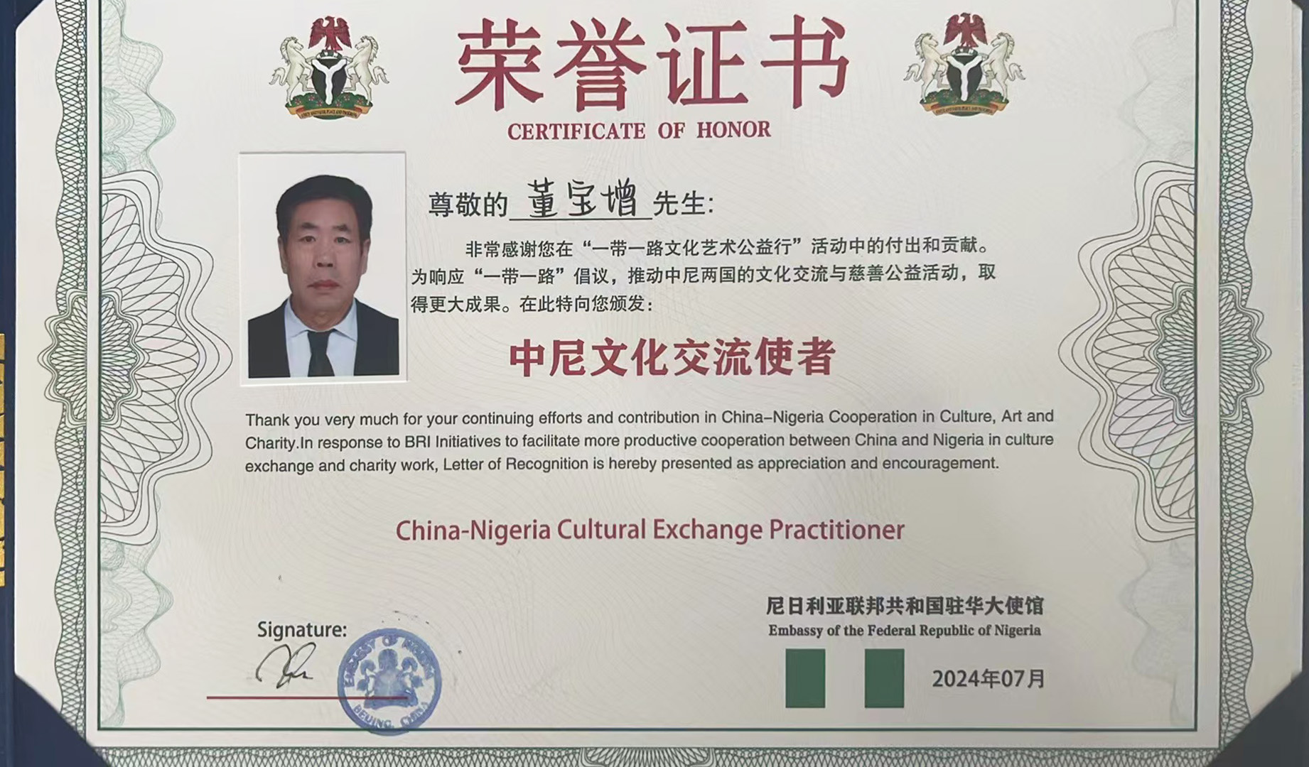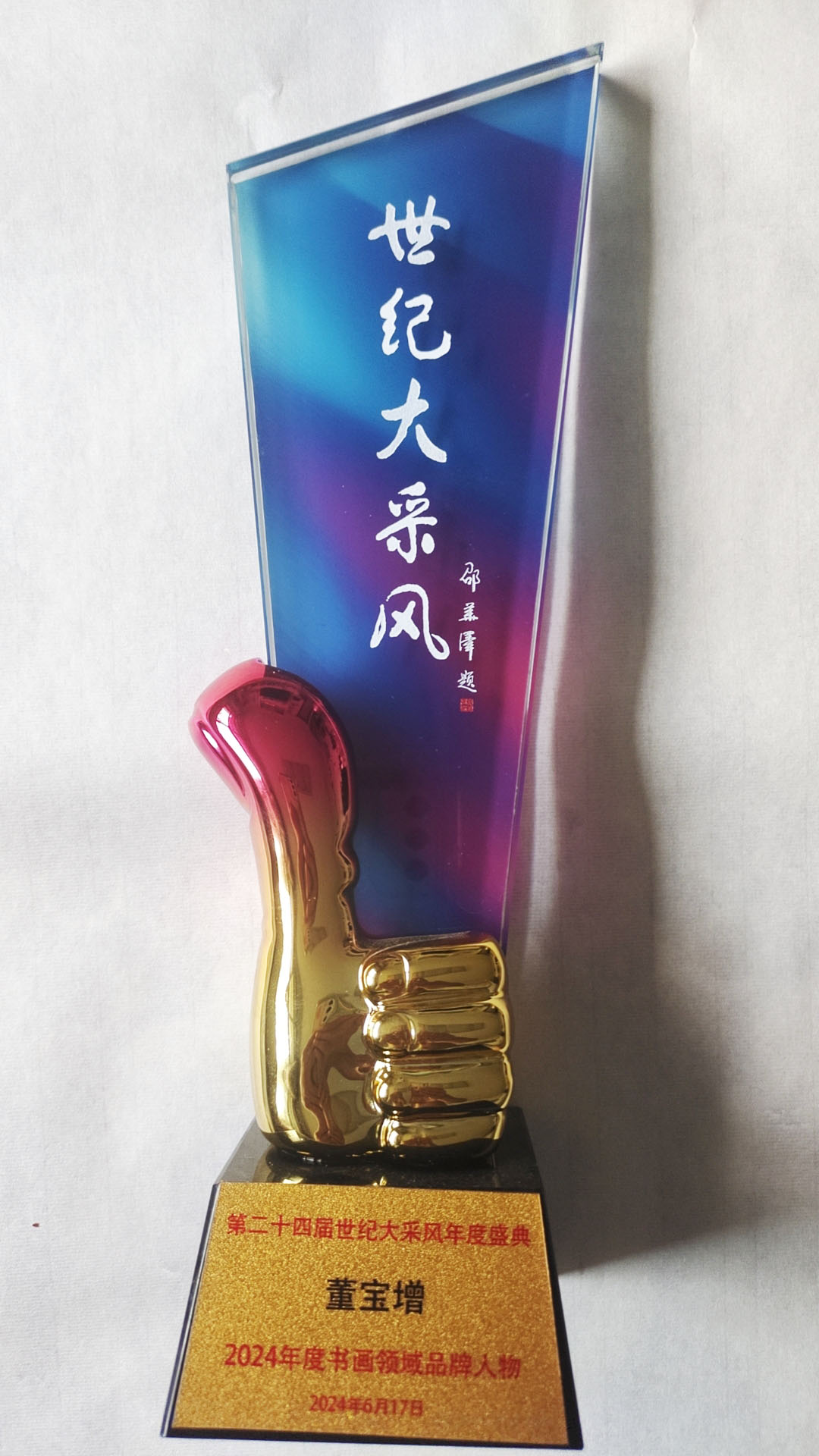在二O二四被邀请参加了央视在杭州举办的中国世纪大采风品牌人物盛典颁奖大会,并且被评为世纪大采风品牌人物。同时也被聘为世纪大采风联盟理事,央视《美丽中国》栏目终身导师,今年7月份被评为全国首批非物质遗产《大国工臣》称号。