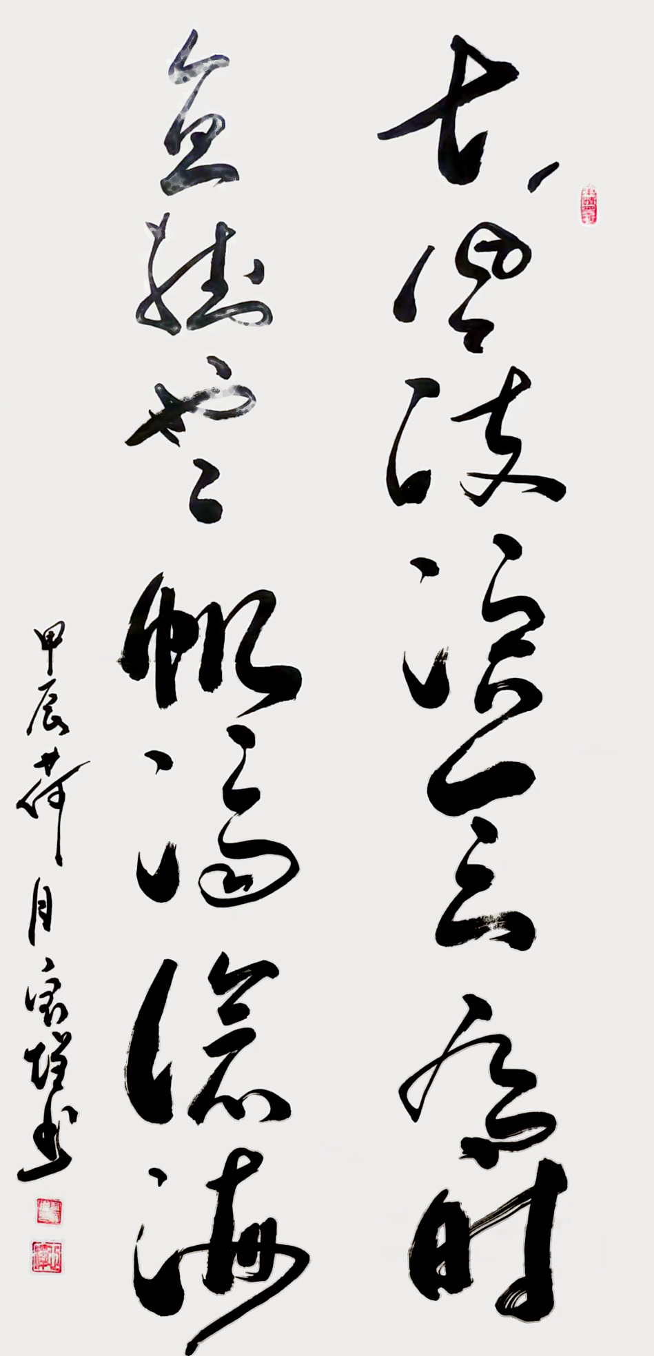 董宝增自幼喜爱书法,尤其钟情于行草。经过多年的不懈努力和钻研,他逐渐形成了自己独特的书法风格——大气、古朴、庄重。这种书风不仅体现了他对中国传统文化的深刻理解和传承,也展现了他个人的艺术修养和审美追求。董宝增的书法作品笔法娴熟、飘逸,线条流畅自然,富有韵律感。他的字体结构严谨,笔画刚劲有力,给人以雄浑大气的感觉。同时,他的作品还融入了一些现代元素,使其在保持传统韵味的基础上,更具有时代气息和艺术感染力。