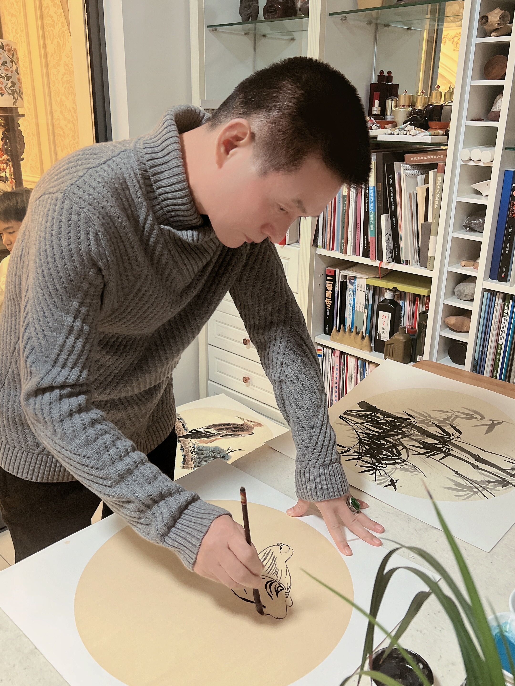 幼承家学,酷爱书画,20世纪80年代末系统软笔临摹《芥子园画谱》全册,并赴东北三省实地写生,积累创作素材,《大美长白山》中堂画作品创作对联:“山松石壁不知土,人住山崖知见烟”均收集存册,奠定传统绘画根基。以画中堂画、山水花鸟为主题,丹青易米,润笔资生。从此步入书画领域并正式拜师成为齐白石第三代传人何江熊先生入室弟子,深研齐派“妙在似与不似之间”艺术理论,专攻虾蟹鱼虫写意技法,每幅作品兼具传统笔墨功力与时代审美特征。