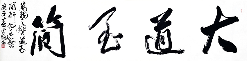 他多年来从秦汉碑拓入手,以增书法金石厚重质感,后又转入魏晋,宗法二王,现今参习借鉴颜真卿、米芾王铎等古代大家风貌,以增其功力。他的字:厚重而又质朴,秀美中又饱满端庄,刚柔相济;也是成年累月的象征,一笔一划铿锵有力,看上去痛快淋漓,身临其境。