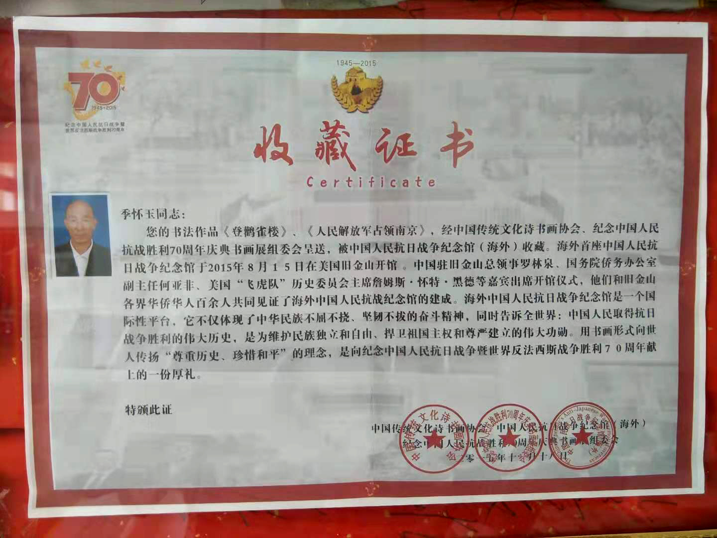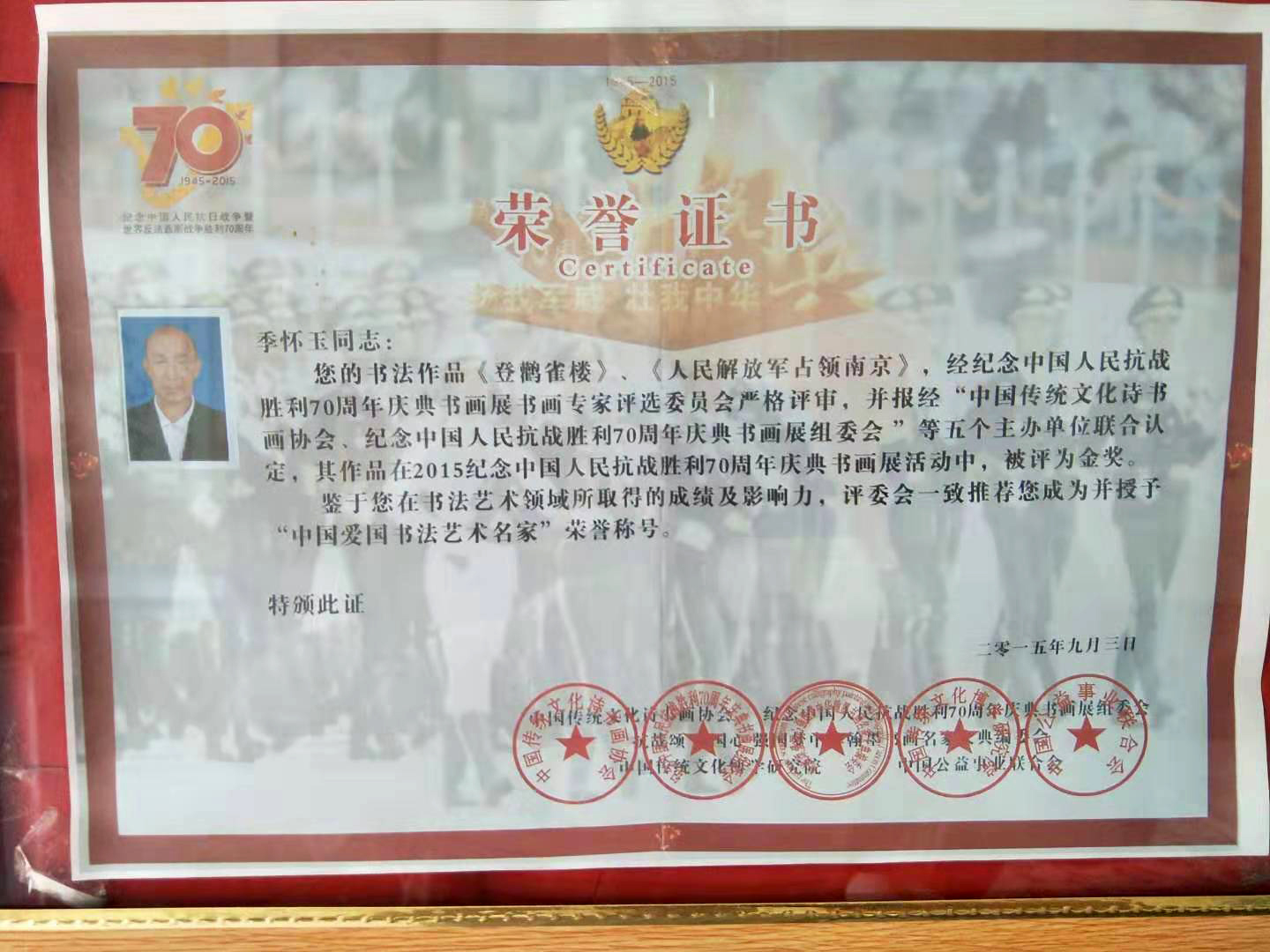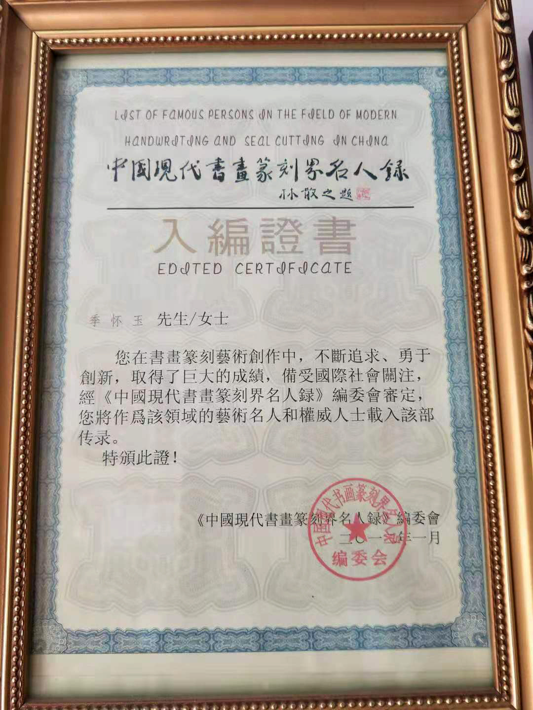 季怀玉,男,河北,国家一级美术师,中国国礼特供艺术家,中国毛体书法家协会会员,亚太地区特殊贡献人物,祖国特殊贡献人物,中央电视台华人会客厅特邀专访人物,入编中国现代书画篆刻界名人录,作品曾被奥运会征集出版,全国书画大展赛中荣获金奖多次,2014北京ABEC峰会最具影响力的书法名家,作品在全国政协礼堂展出,尔后在香港,首尔,新加坡,印尼,澳大利亚巡展,被中华艺术博物馆永久收藏,载入史册,并颁发收藏证书,特邀国际国内邮票出版三次等。