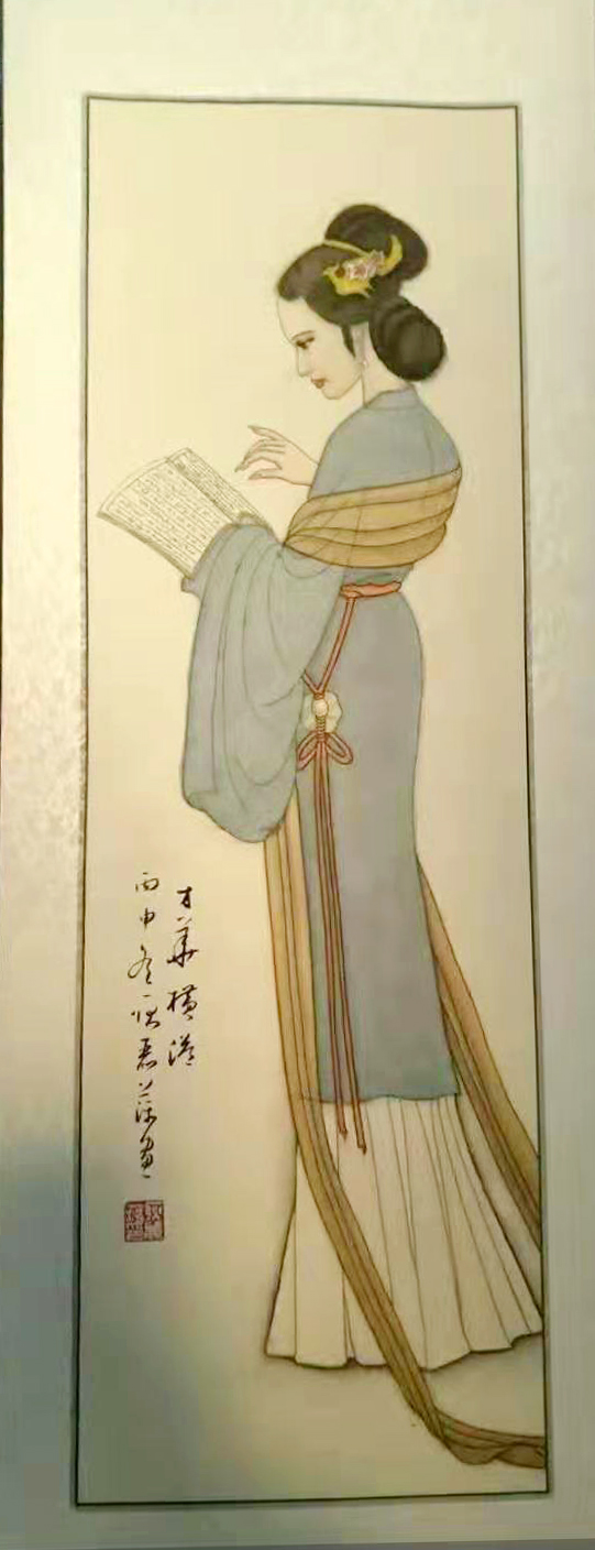 耿丽萍同其姐姐曾耗费一年多的时间,刺绣出一幅长5.3米,宽43厘米的唐朝名画,《韩熙载夜宴图》,引起艺术界和有关部门的高度重视,并在河北电视台宣传报道,反应强烈。学无止境,做无尽头。耿丽萍虽然一度陶醉在自学的乐趣中,但外面的世界,外面的精彩时时招唤着她,使得她的热情在度升温,她不惜丢掉工作,慕名到邯郸拜中国美术家协会会员俎翠林先生为师。值此,她的美术工底如虎添翼,有目共睹。神态各异的万幅人物速写和美若天仙的古代仕女,充分展示了耿丽萍的聪慧和才智,她对艺术的执着将是她一生的追求!