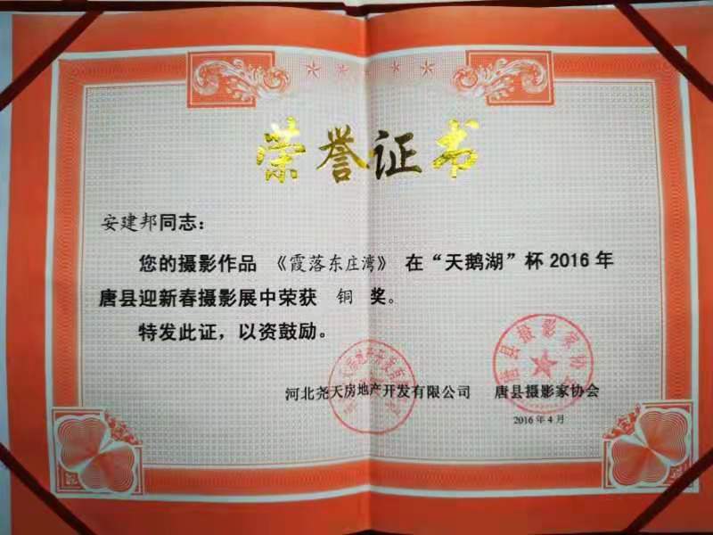 安建邦,男,祖籍:河北,生于1962年7月,汉族,党员。爱好文化艺术摄影,博学广闻,自学成才,退休前在唐县公安局刑警大队工作。