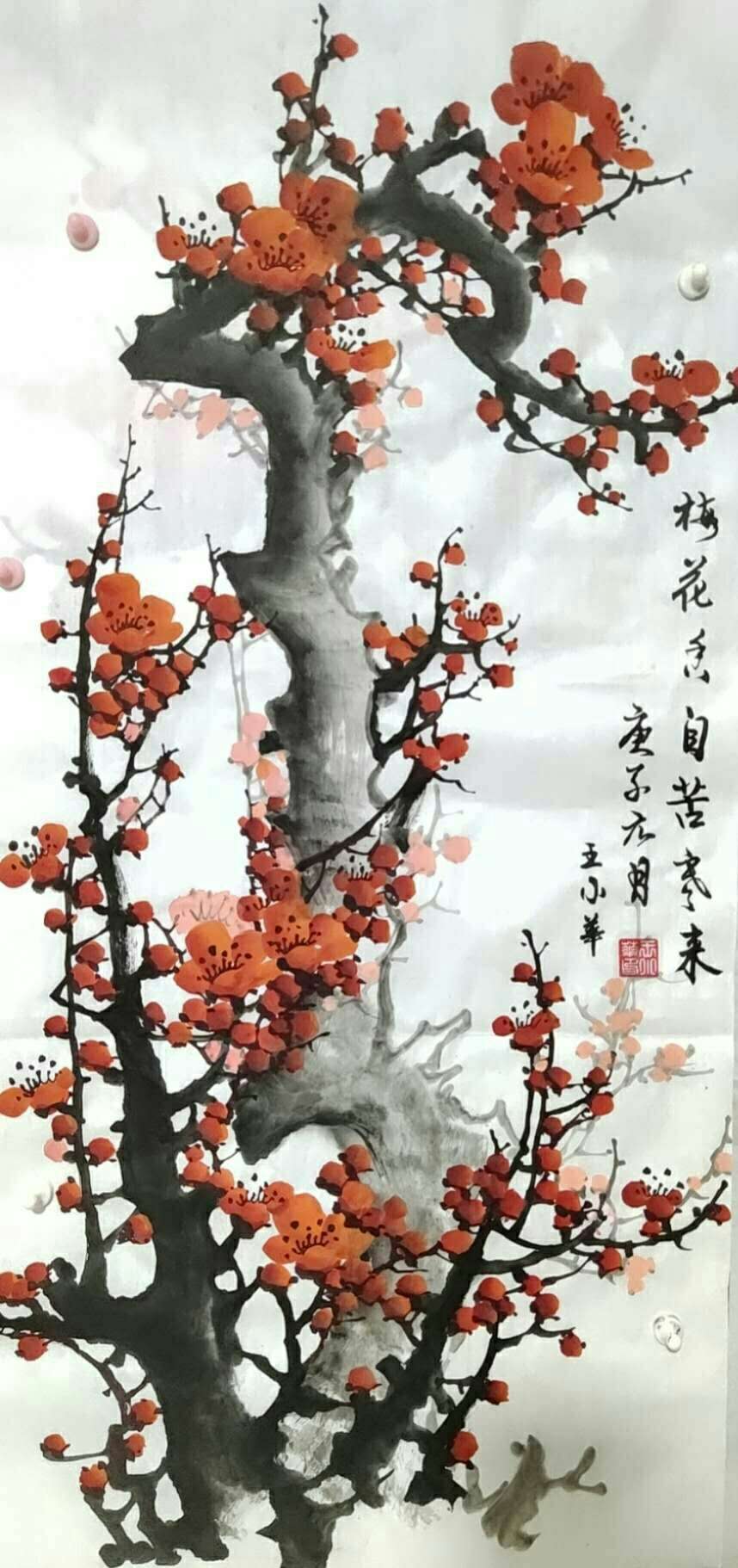 王小华,雅号:缘梅花,河北省邢台市人,写梅阁学员,师承闫石老师。擅长国画梅花图,国画牡丹图等等。代表作有梅花《铁骨生春》、牡丹《富贵花开》、《国色天香》等。