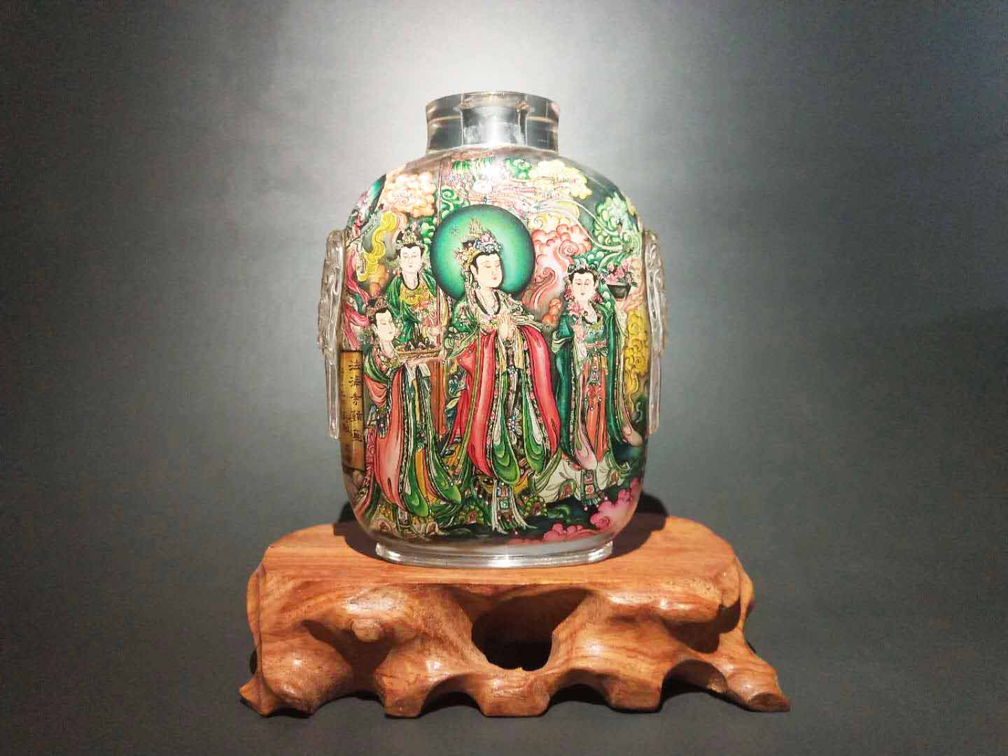 刘敏,自幼酷爱美术,受艺术氛围的熏陶,跟随舅舅刘晖学习内画绘制工艺,潜心学习内画精髓,不断探索内画技法,凭借扎实的基本功,技艺突飞猛进。其作品形神兼备,色彩典雅,笔下线条讲求粗细变化,刚柔并济,或短促有力,或连绵延长,既能描绘出主体的动势化倾向,又能把握内在特质,有了形体的依托情感的倾注 ,每件作品都极富感染力,深受收藏家人士青睐。