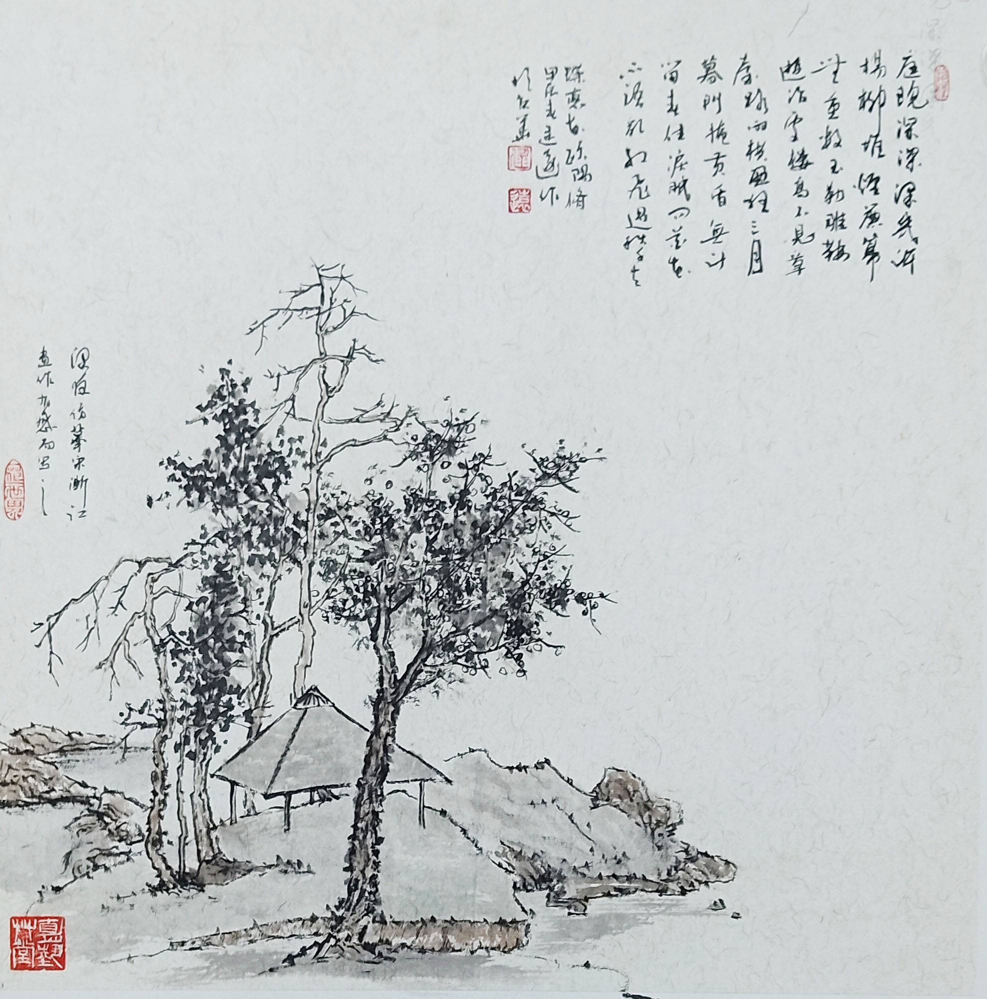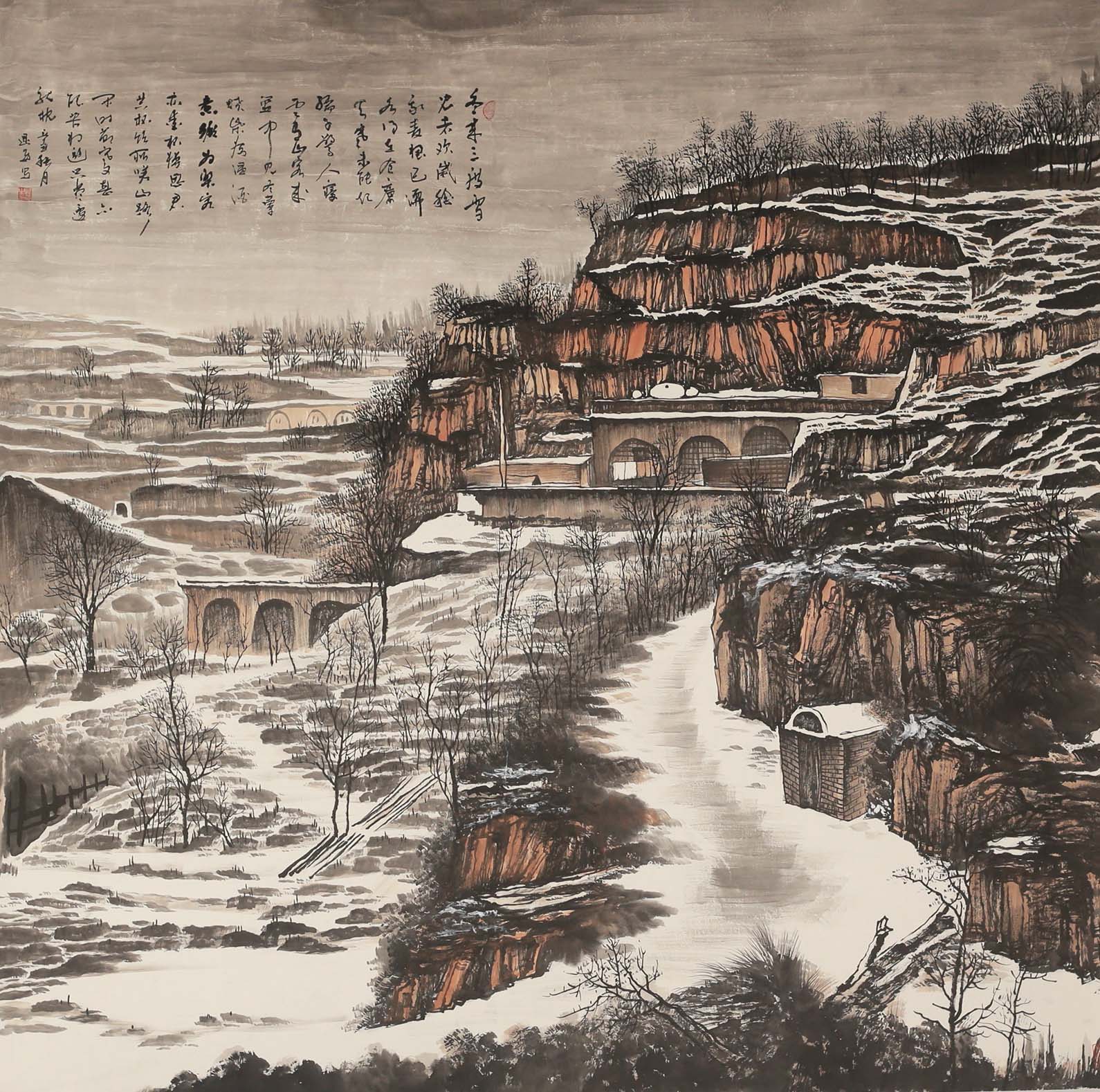 逯建军的艺术得益于书画兼修,既以书入画,用笔滞涩浑厚,又拙重苍茫,以画入书,使他的书画获得了鲜明的形式感和可视性的特点。