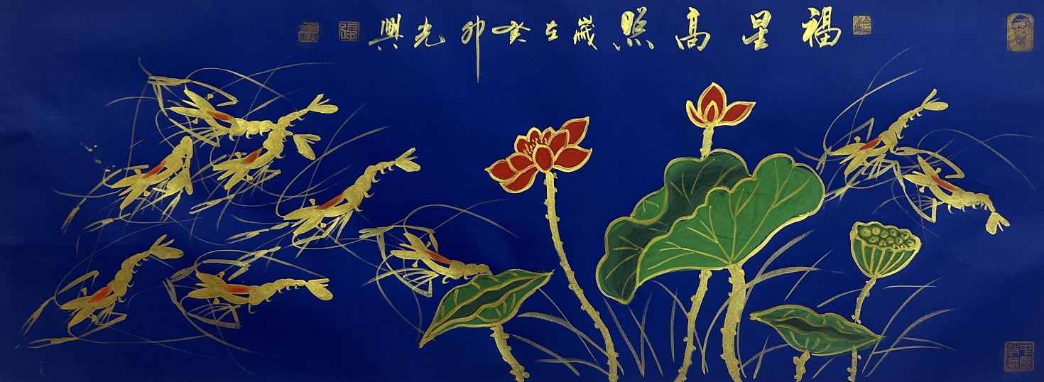 国画作品《百虾图—十米长卷》