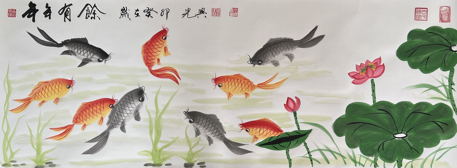 国画作品《年年有余》
