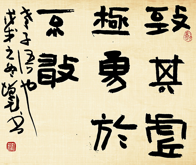 几十年来,楷隶用功最深,并兼善行草。其作品追求润朴、稚趣、空灵、辽远的高古风格 。