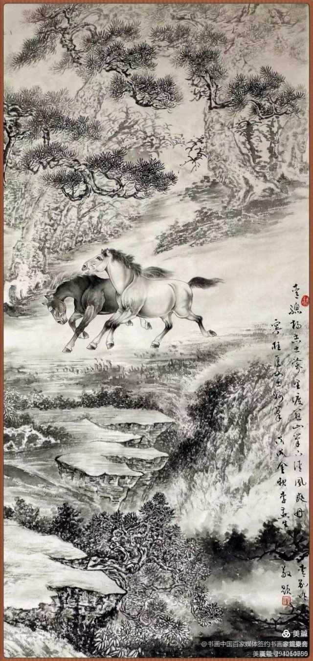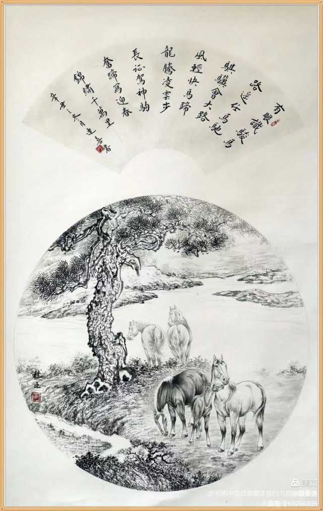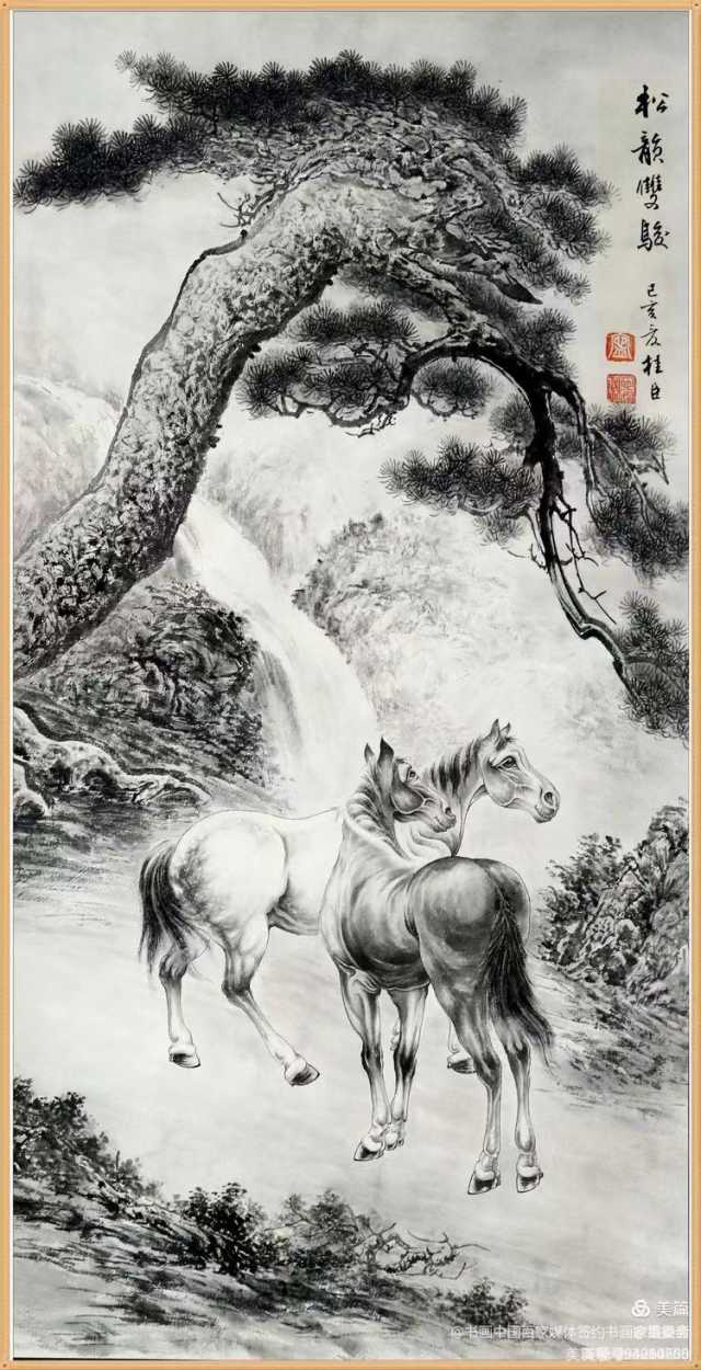 宁桂臣的书画作品直接受到爱新觉罗书画艺术的影响,脉络清晰,其画马线条儿稳健,毛肤润泽,风骨清逸,生动浑成,斗抖腕挥毫展露的是中华千年文脉的旷达情怀和高远志趣,代际之间传递的不止是书画技艺,更是对艺术真谛的探究。对人生境界不断深化的领悟。