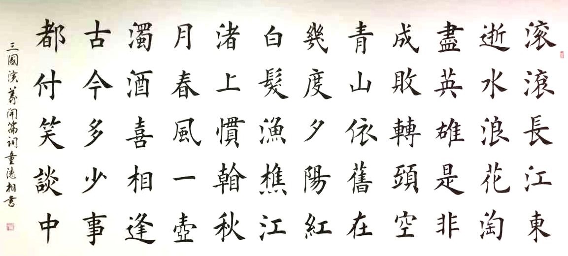 童德相是书法界著名书法家,一生致力于弘扬欧体楷书的宣传、教育工作,童德相欧体书法教学更是促进了书法爱好者接触书法、学习书法的机会,为普通书法爱好者提供了一个专业的学习平台,是中书协和教育部楷书培训教授,其楷书教材作品河南书法培训推荐课件。其楷书作品被多家景区、碑林等刻制成石碑、匾额,其楷书作品素有“北田南童”,是欧楷重要传承书法家,得到众多楷书爱好者的好评和青睐。不但书法理论好,字写的也很好。童德相被田英章称为楷书知音,足见其书法的功力。这样的人最适合教书法了——理论好,字又写的好。童德相临欧阳询的《九成宫》可以做到以假乱真,足见其欧楷的水平已经相当的高。