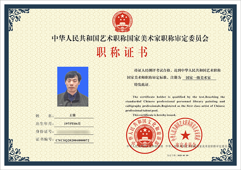 现在为国家一 级美术师,国礼艺术家。中国民间书画研究会理事,河北省美术家协会会员,晋商书画院院士。河北省书画院特聘画家,河北省诗书画院副院长,河北省山水研究会副会长。