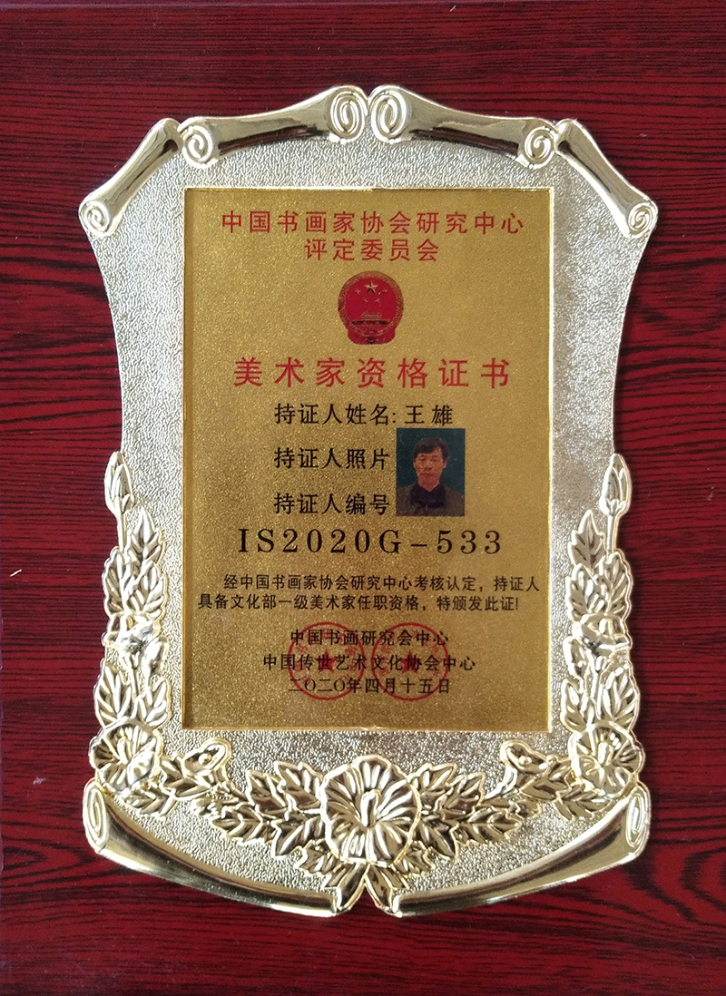 王雄,字为信,号腾瑞轩主。1975年生于河北省深泽县,毕业于河北省保定市工艺美术学院。现在为国家一 级美术师,国礼艺术家。中国民间书画研究会理事,河北省美术家协会会员,晋商书画院院士。河北省书画院特聘画家,河北省诗书画院副院长,河北省山水研究会副会长。