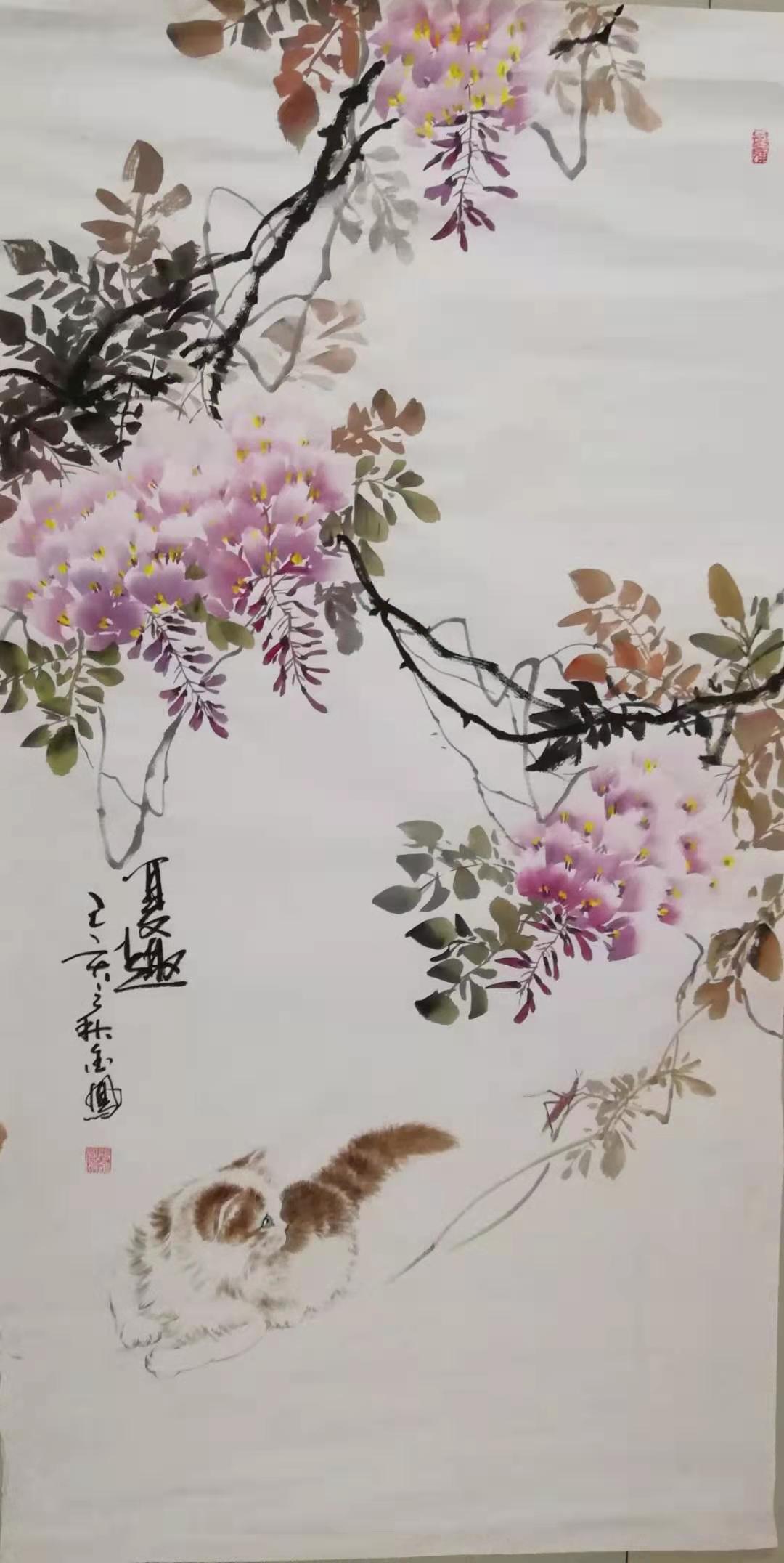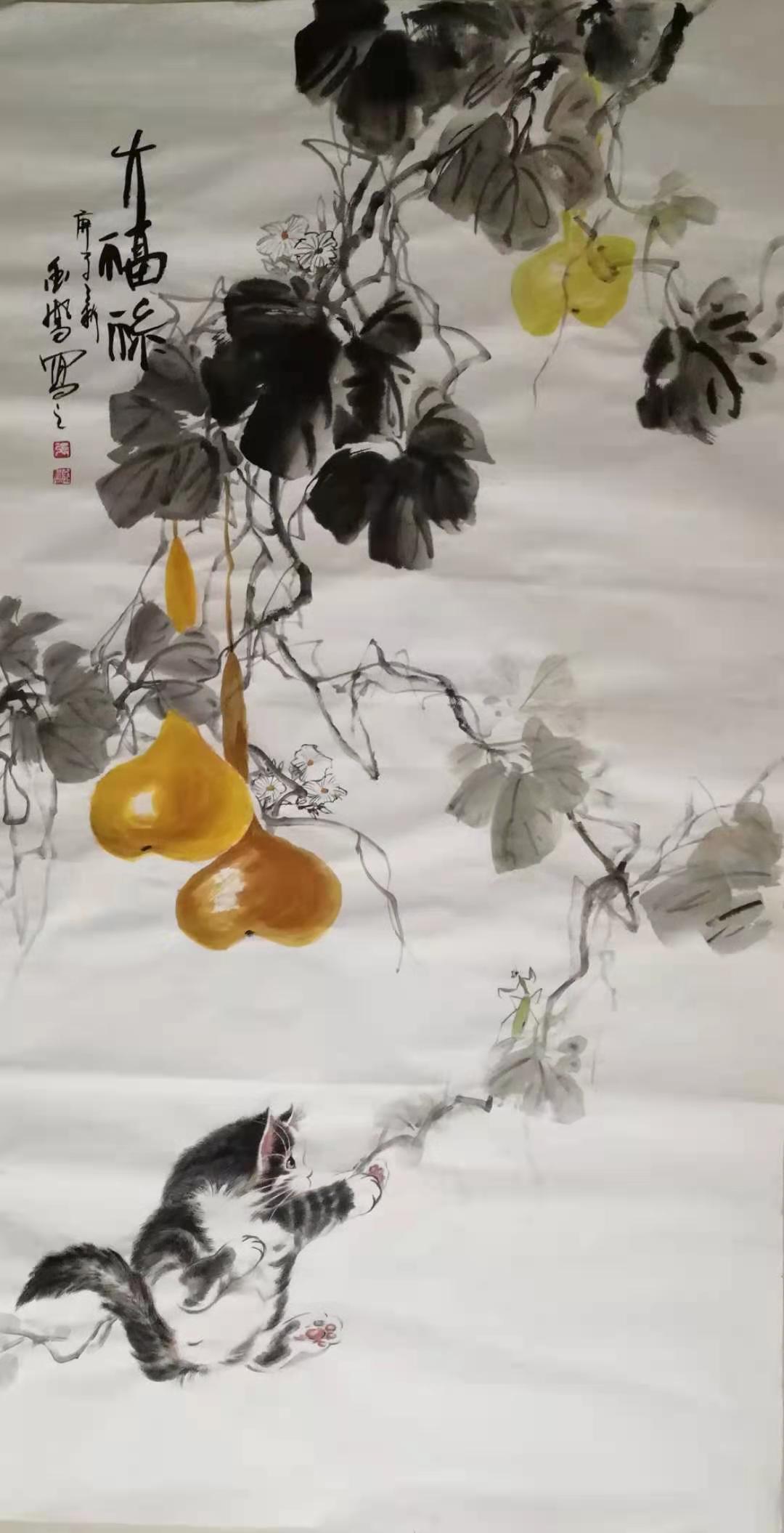 张金凤,1983年生于沧州,中共党员,自幼喜爱绘画,拜著名花鸟画家陈金生先生为师研习花鸟,2002年考入廊坊师范学院艺术系美术学专业,在校期间师承杨天问,孙万秋两位老师,2006年毕业,本科学历,学士学位,毕业后又深受行界老师指导,画风日渐鲜明,作品小有成就,现主攻花鸟,动物,尤擅动物猫咪。个人作品多次入展入编,深受收藏家喜爱。