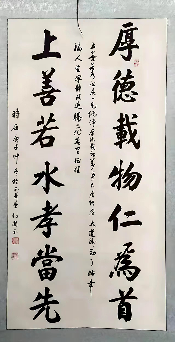 何国玉,男,1956年生,河北人,别署玉荷堂主人。何国玉先生出生于书画世家,在先辈影响下自幼酷爱书画50余年笔耕不辍。从唐楷入手学习后临摹研习二王、欧、颜、柳、赵诸体,主攻欧楷和赵楷,后又研习陆柬之行书,源于古人而别于古人,广采众家之长,有扎实的书法功底。书法风格上的主要特点是严谨工整、平正峭劲。整齐严谨,中宫紧密,主笔伸长,显得气势奔放,有疏有密,气韵生动,恰到好处。点画配合,结构安排,则是平正中寓峭劲,自成一格,是一个正统派、功力型的书法家。禅意画作在章法布局,造型,笔墨技法及画作处理上,不拘一格,取简弃繁,体现多思善悟,把万物和生活哲学的领悟融汇其中,禅意绵绵,充满了博大精深的中国文化内涵。山水取古不泥古其青绿山水,设色明艳用笔细劲。文人画以笔墨勾勒山水,丰富的皴法,塑造山水的骨相与质感,营造或雄浑、或清幽的实景氛围,作品超脱尘俗、追求内心逸气的格调。是当代书画双修艺术家典范。