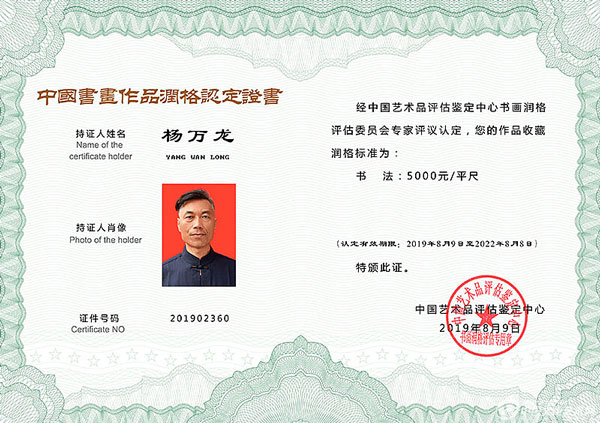 中国实力派书法家杨万龙现为中国书法榜书委员会会员,河南省书法家协会会员,牡丹书画研究院副院长,北京翰墨艺术院签约书法家。