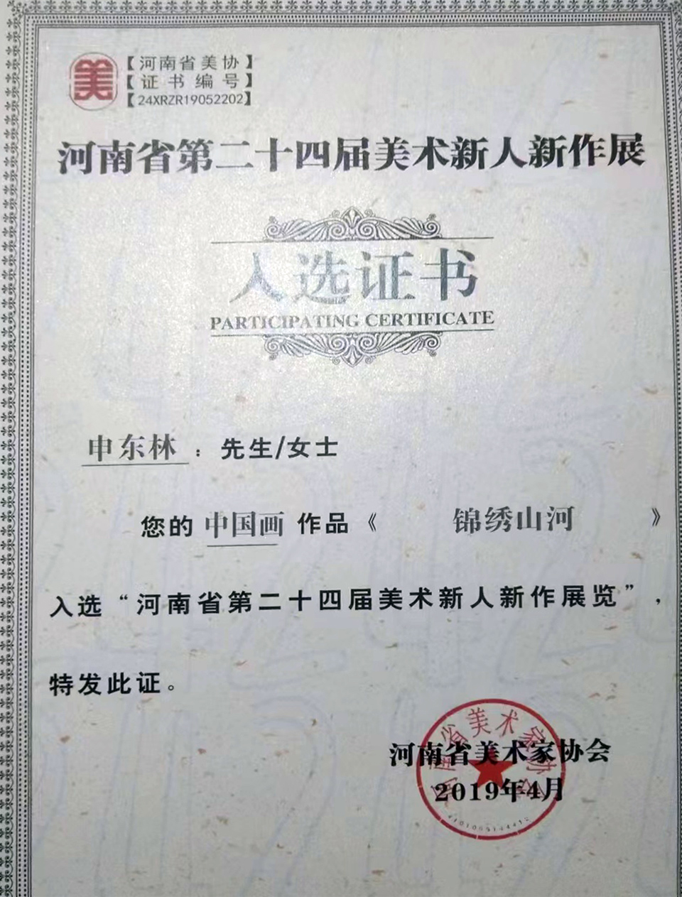 2019年作品《锦绣山河》入展河南省第24届美术新人新作展。