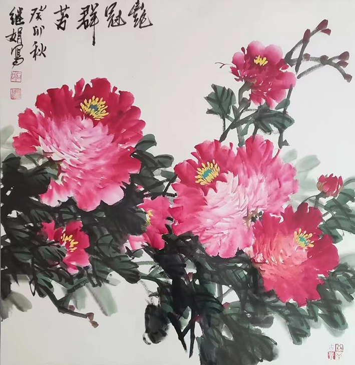 石继娟,1973年生,河南省洛阳市瀍河区白马寺镇人,现任河南省书画家协会会员,河南省花鸟研究会会员,洛阳市美术家协会会员,洛阳平乐国色牡丹画有限公司特邀画师。师从郭亚修,王建福,并得到洛阳美术家协会主席王绣,文柳川等名家的指点。