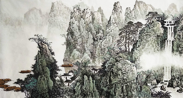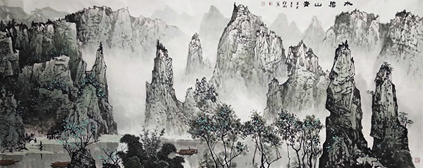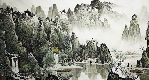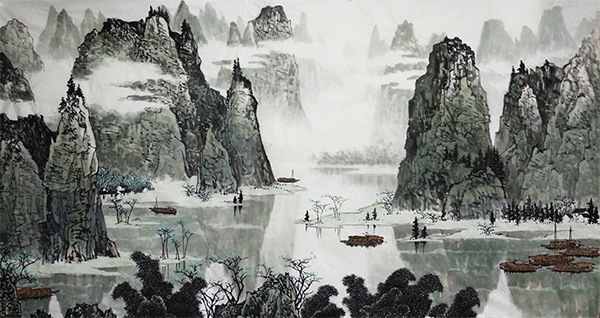 师承白雪石国画山水,画面呈现出桂林山水的青峰碧水、云雾缭绕、江边渔家、小船渔歌等氣象给人以清心俊逸,朴秀多姿的感受,深受广大书画者赞誉。
