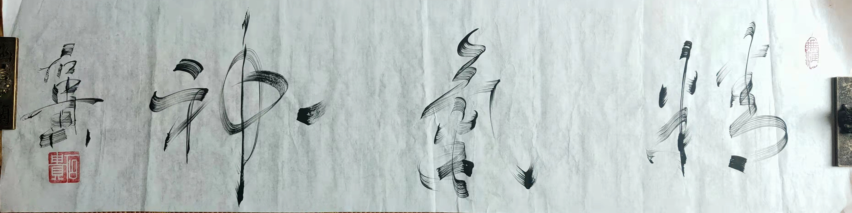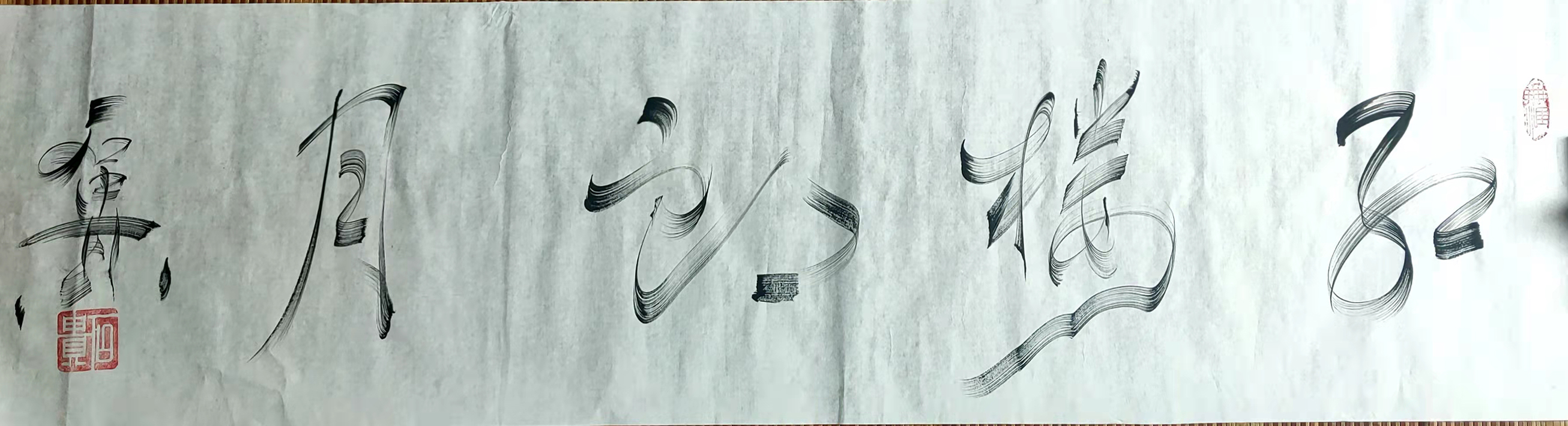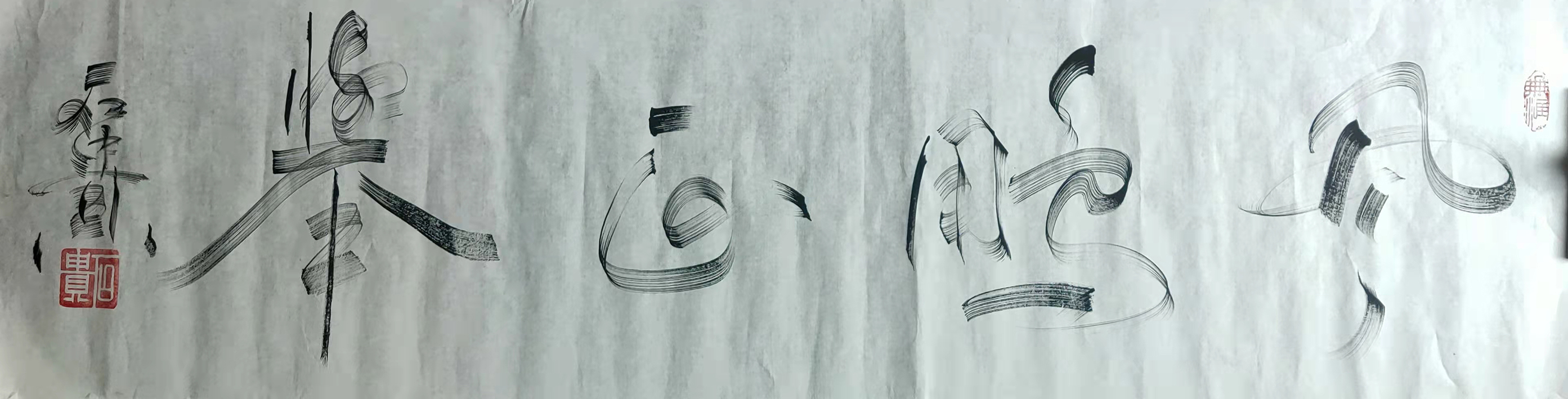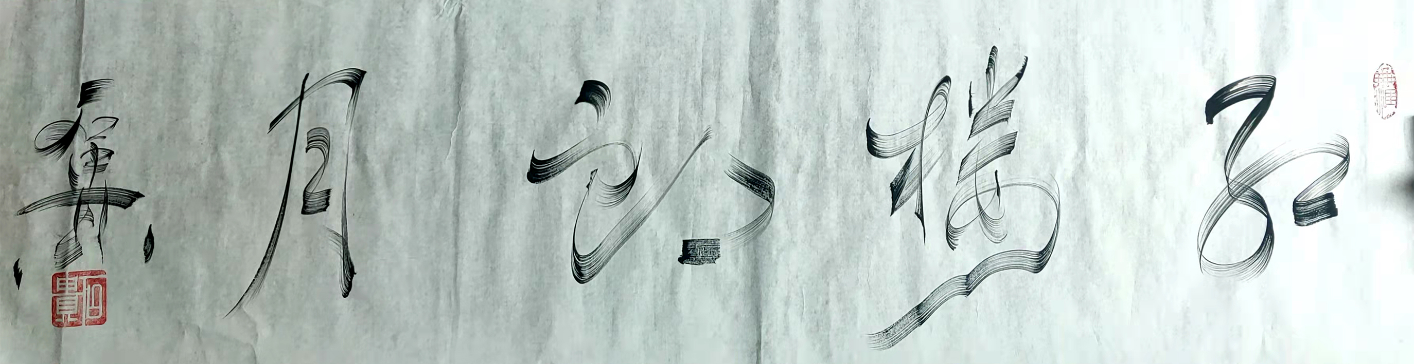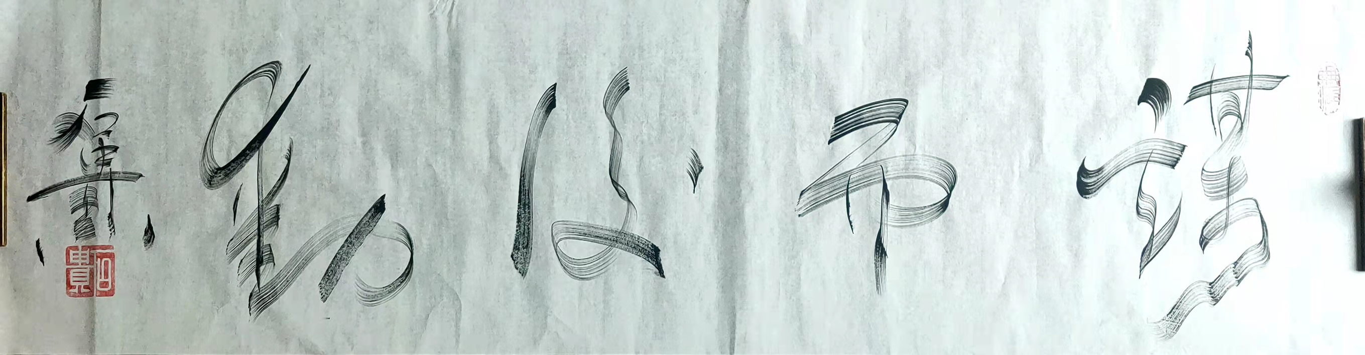 三、其飞白书深得传统文化刚柔相济、奇正相和、阴阳相调之精髓 ,很好的彰显出书法"言有尽而意无穷 ”的臻境。