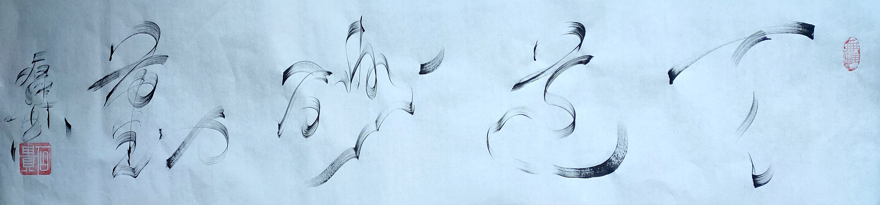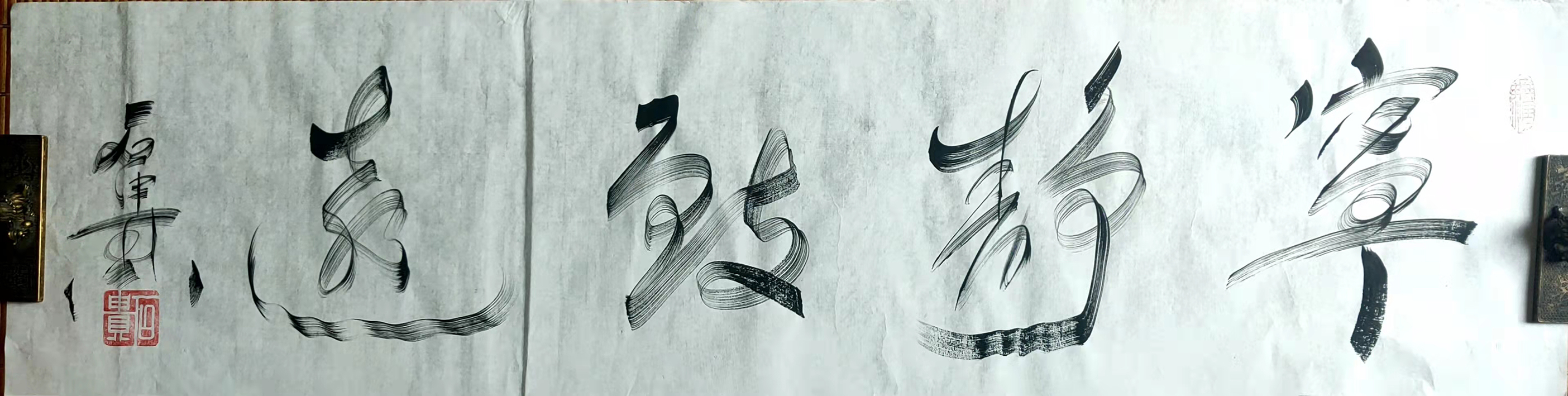 诗云:物华天宝应运,人杰地灵随行。字无语而锵然,墨无韵而曲成。云烟起于双目,详辩瑞霭千重。鸿雁征途尚远,禅心悟在其中。