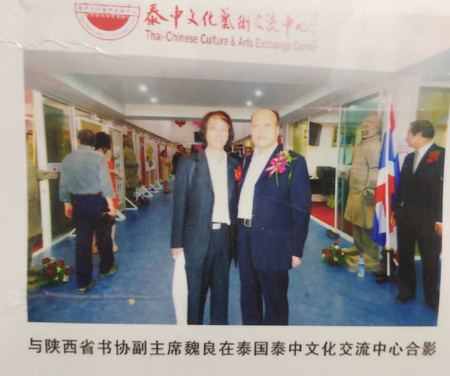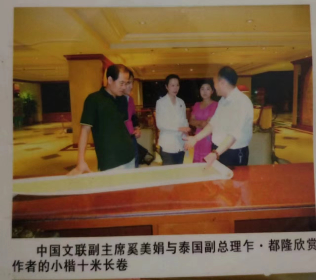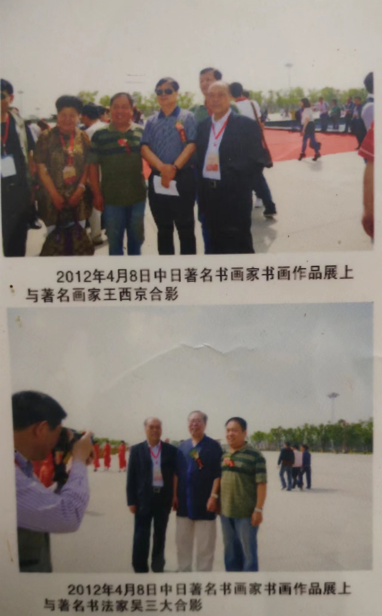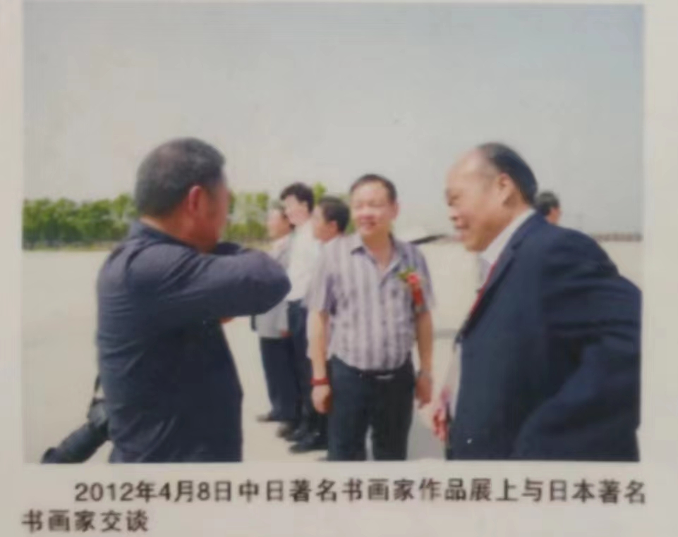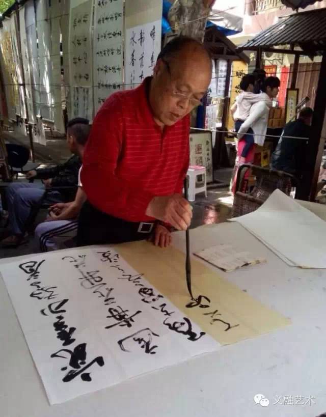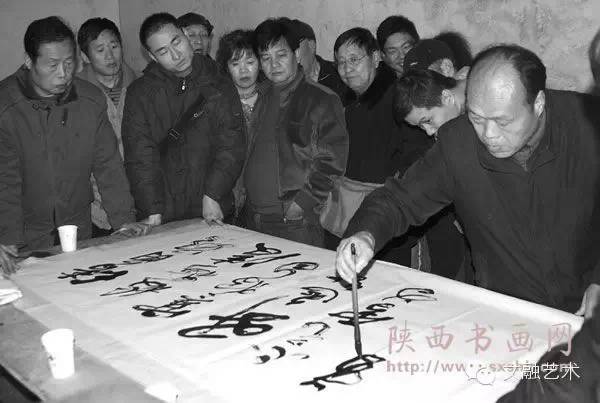 1984年,在东北三省书法大赛现场创作,沈鹏、刘炳森观看其创作。