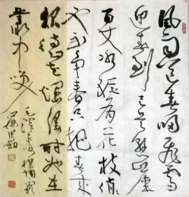 张剑书法,四体皆能,尤工草、隶。详观其行草,如天马行空,神龙戏海,翻腾跳跃,不可端睨。渴笔、破笔、伞笔、滚笔相互穿插,忽奇忽正,似醉似狂;或如一鹞鑚空,疏忽无踪,或如万马奔腾,恍然至前。笔走龙蛇,无古无今无我;瀚飞云烟,有情有性有味。粗看如刘怜新病,落步蹒跚;细品似观公孙舞剑,狂花散乱,大有清代付山之书风。其隶书,既出法度之外,又在法度之中。熔铸张逸,出入石门,得汉隶雄浑之气,刚劲之力;不有意安排而更显端庄;不精心布置而更显自然。如万年枯藤,壁折屋漏,纵任无方。粗犷而不失细腻,生野而不失温文,豪宕而不失沉着,朴拙而不失巧思,老辣而不失灵秀。观之使人回味无穷,余音绕梁。张剑之书,极富个性,纵肆奇逸,用笔果敢,大气磅礴。师古而不泥。从而形成了自己的独特的艺术表现形式。