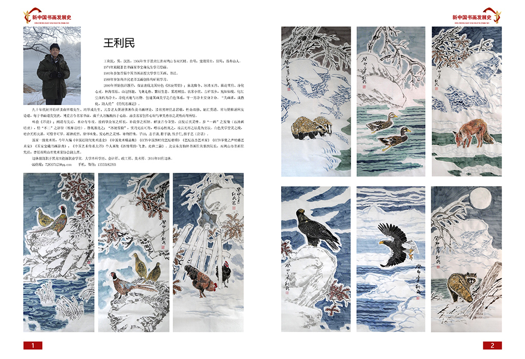 出版个人画集《冰情雪韵-飞禽篇和走兽篇》《荣光璀璨 共谱华章 王利民》《领航中国艺术人物志王利民》。