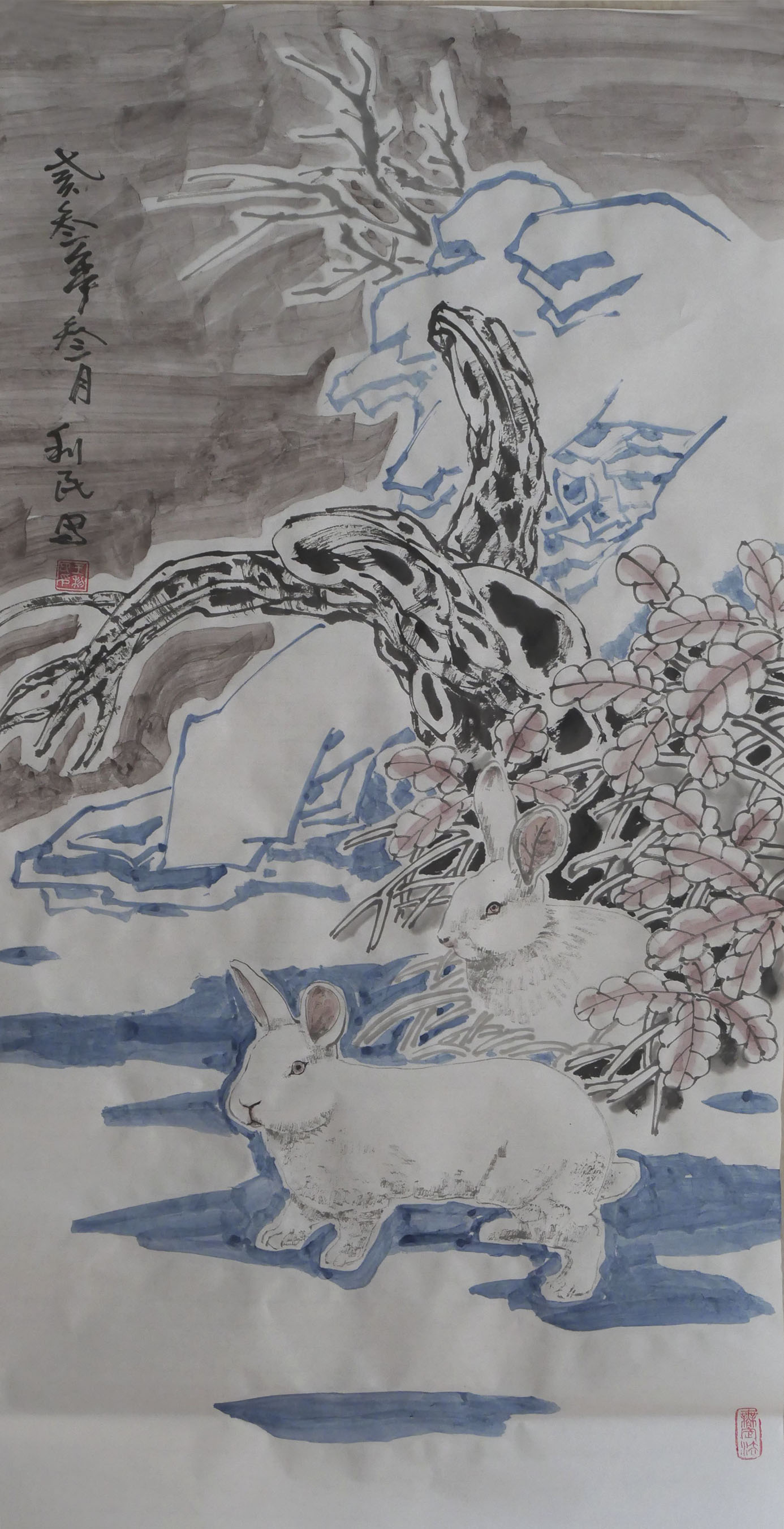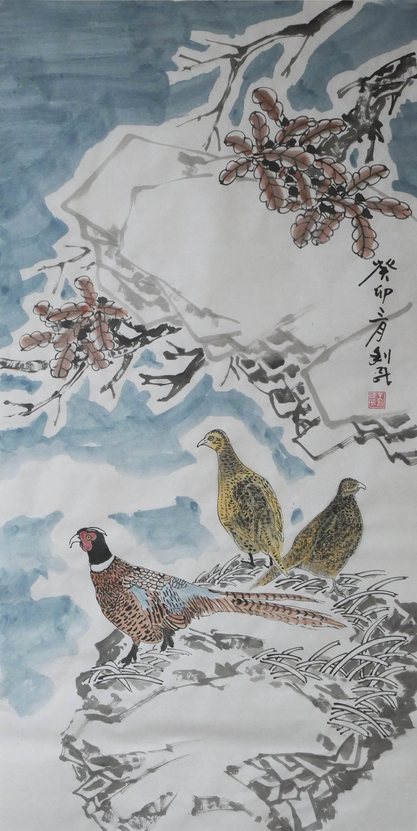 2000年开始独辟蹊径,探索表现北国特色《冰凌雪韵》;塞北隆冬、冰清玉洁、霜花雪月、净化心灵。林海雪原、山边野趣、飞禽走兽、繁衍生息。雾凇树挂、农家小院、吉祥雪乡,宛如仙境。化红尘腐朽为净土,净化天地与万物。创建国画美学之白色体系,守一方净土安身立命。“夫画者,成教化,助人伦”《历代名画记》。