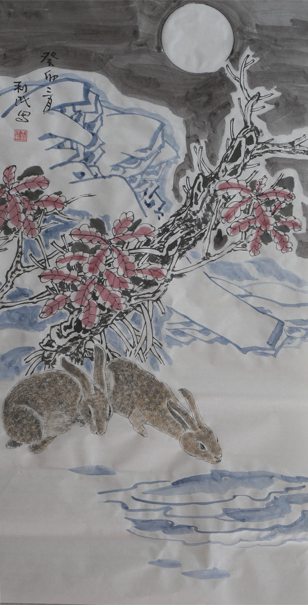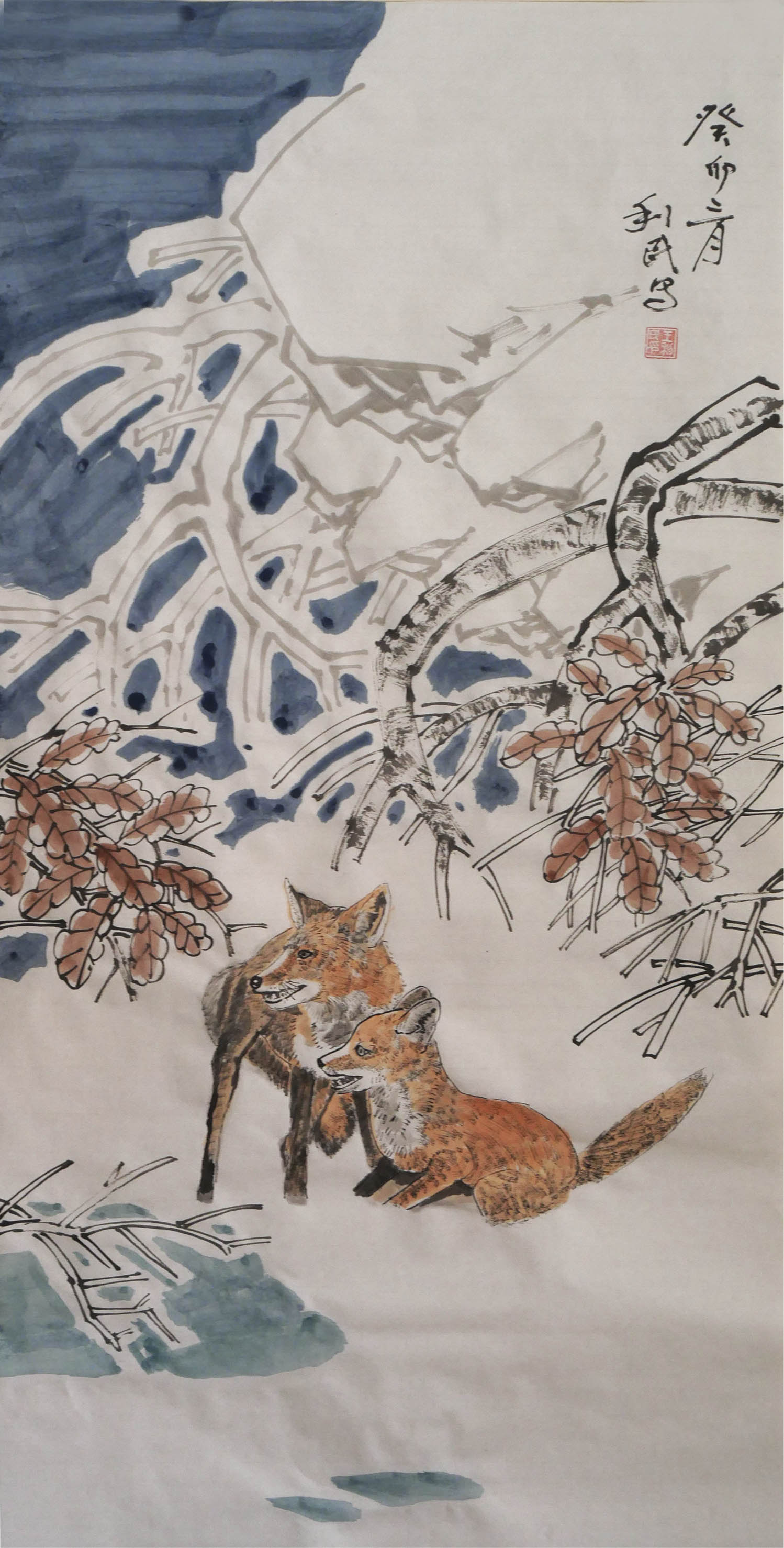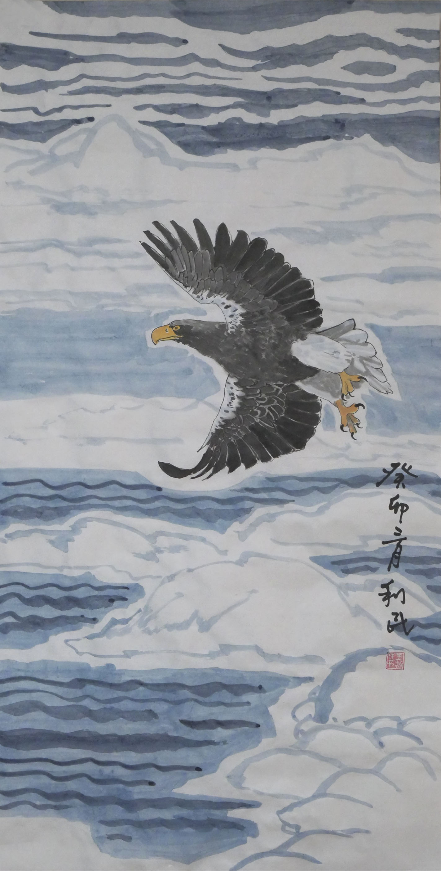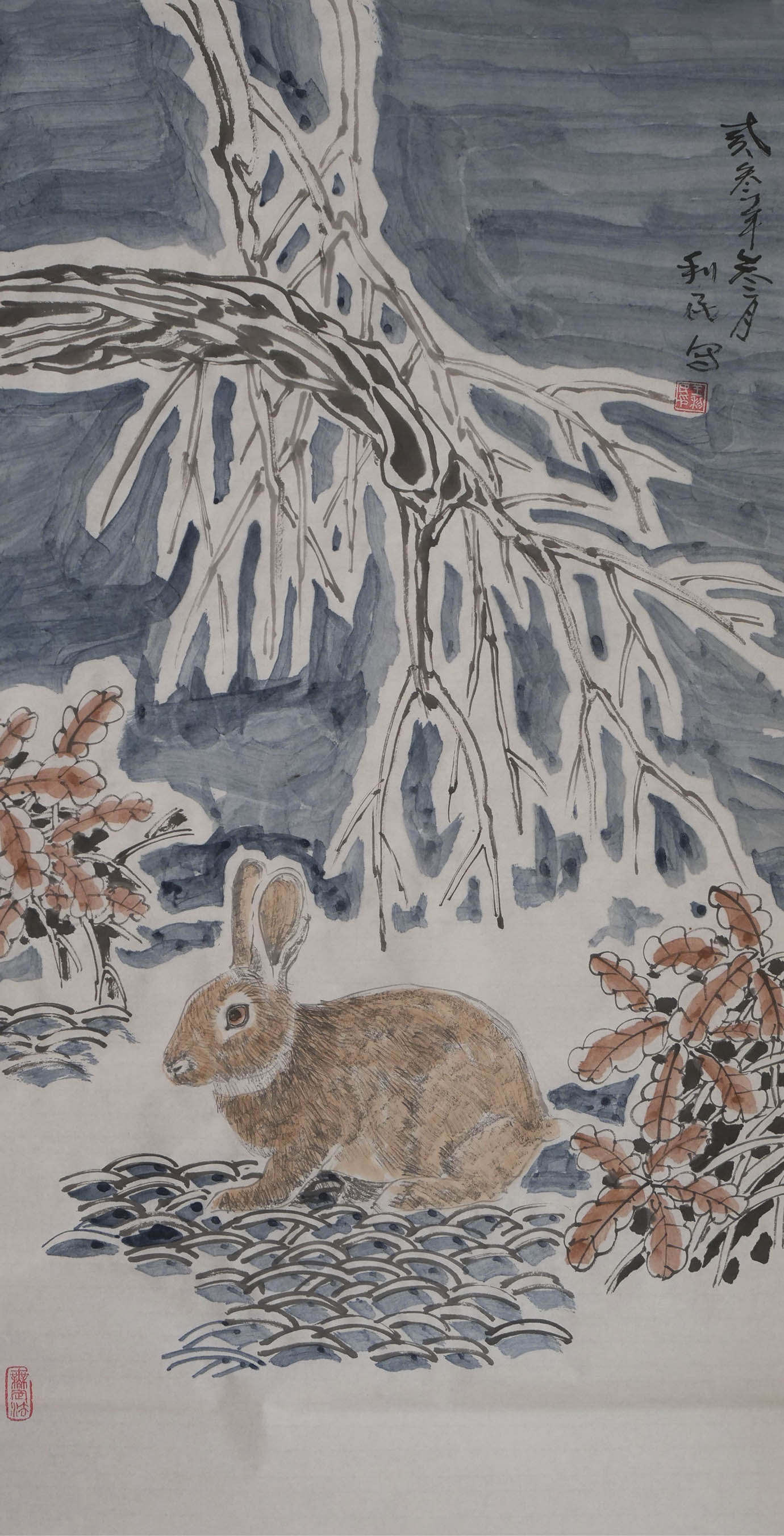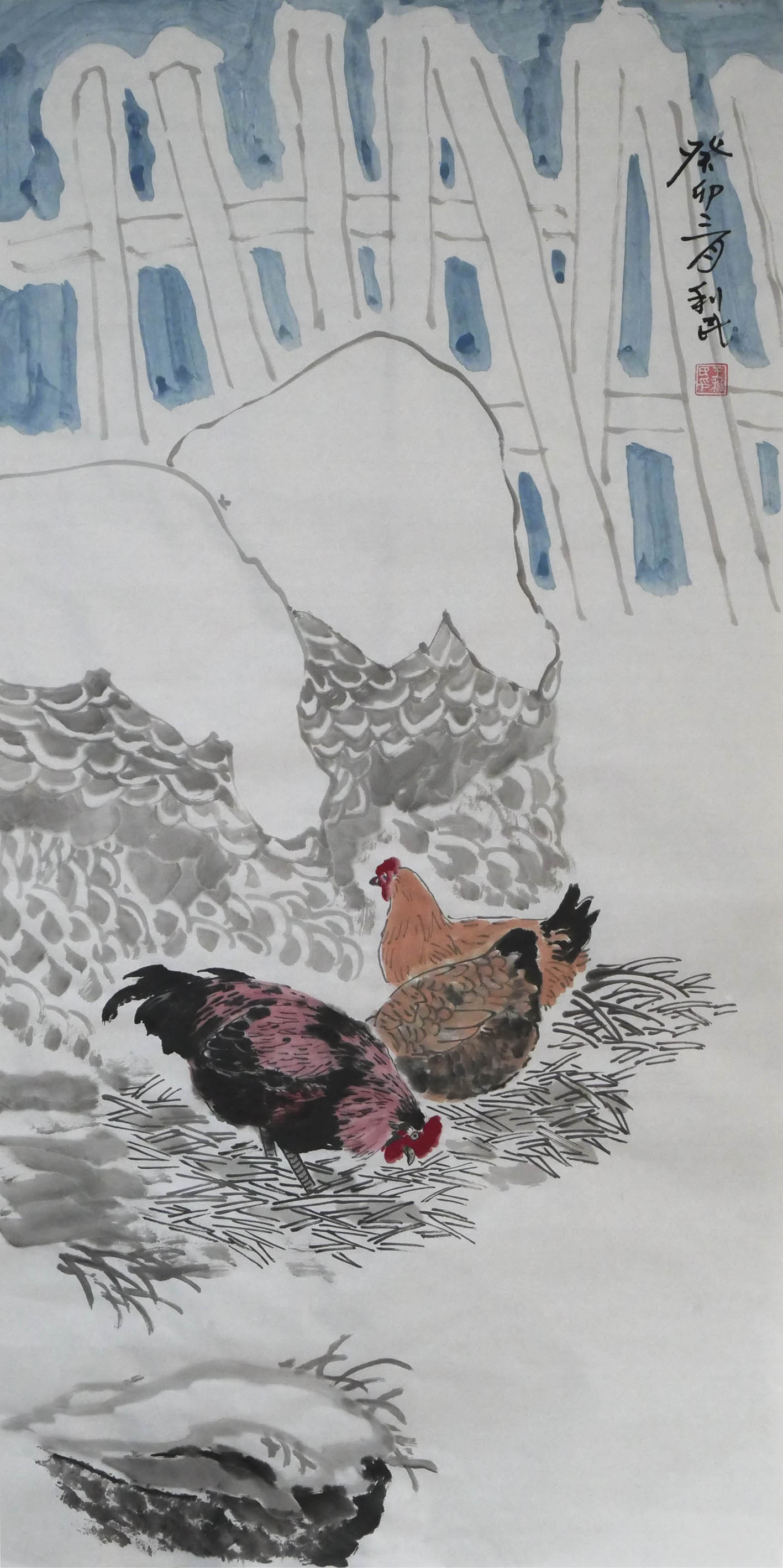 画风、画云、画水、画雾,从传统技法的角度来讲,是留白的技术,也是以墨衬白的手段,通过宋代以来文人画的反复酝酿,已经形成了标准化的创作程式,所以历代画家画风云水雾的学习过程,就是依画谱而得技术的练习,并不需要个人太多的探究与揣摩。但是画雪,因为有时间元素的必需介入,并没有现成的“雪法”技法程式,是中国画技法的一处空白(无矾水特技画法),需要磨砺者施以天才般的进取,方可以依雪而绘韵。