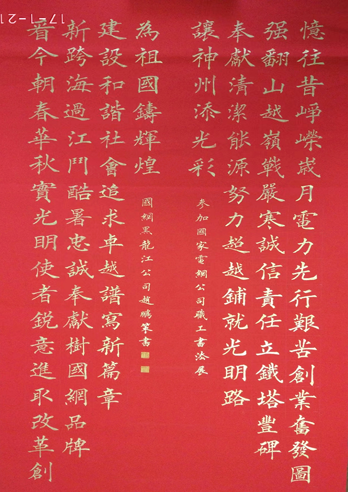 2022年,书法作品《习近平总书记在中共中央政治局第36次集体学习的重要讲话节选》在国家电网公司总部收藏展示。