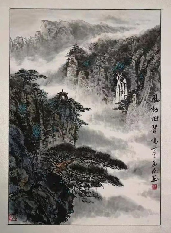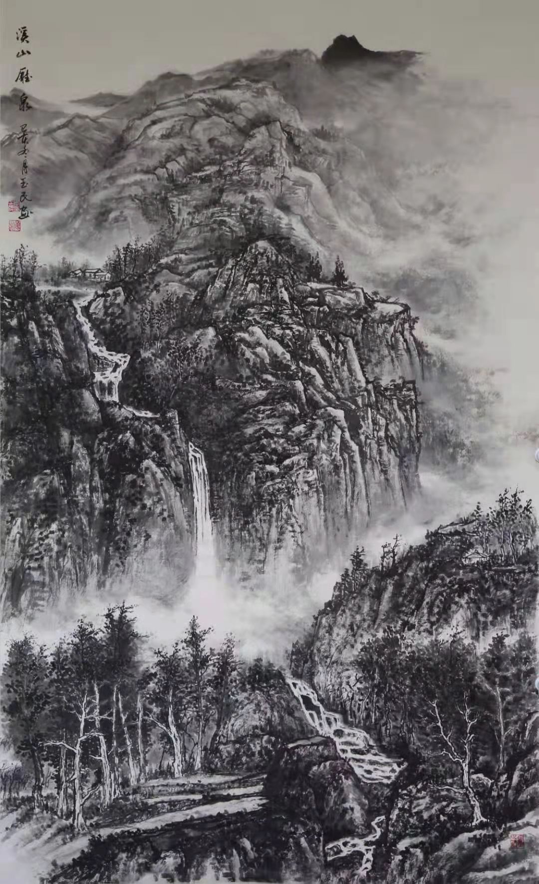 2020年9月国画《溪山听泉》在黑龙江省绥化美术双年展中获优秀作品奖。