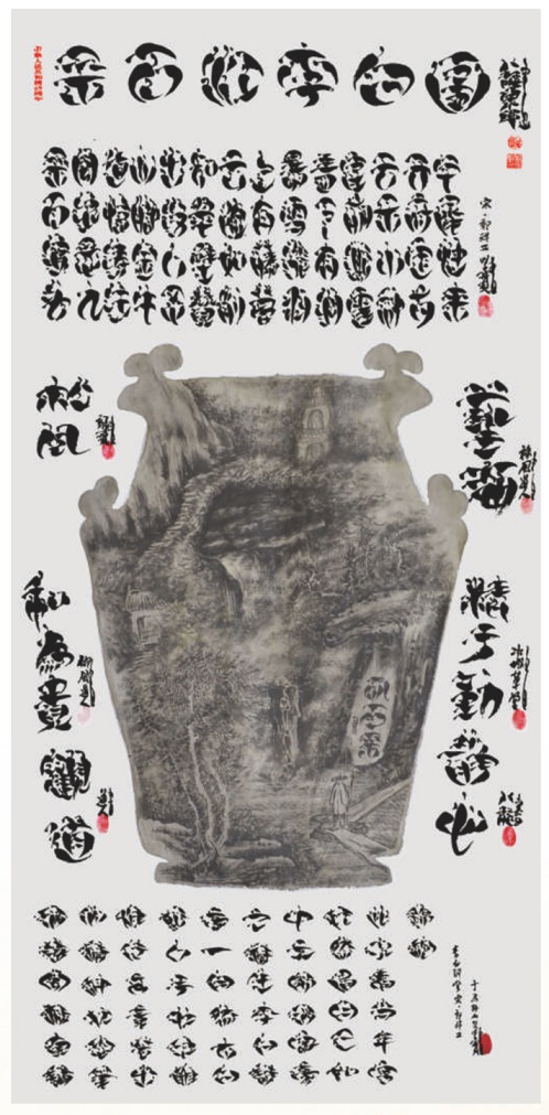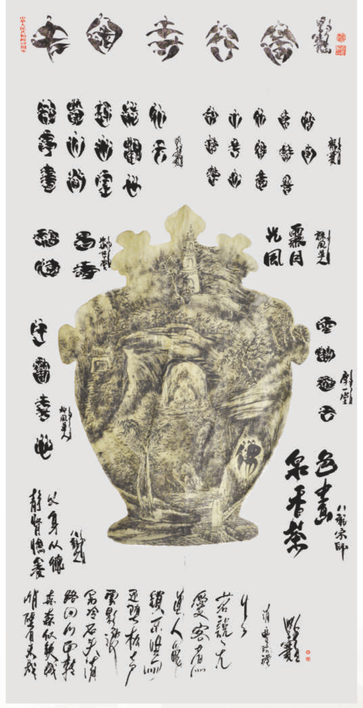 "瓶形字画"是指一种主要用在透彻的古今形象陶、青铜、瓷器、玉石器、黄金白银器等种类,小瓶子内的绘画,有人物、山水、花鸟等无所不及一系列和自创"辣形字画"柳体、鱼体、鸟体、竹体、叶体、龟园书体等无所不及创作。可以说是国际创始人。学宝深切体会而自求:以一种心绪来展示中国传统文化自然而生的"澄怀味象"从"天人合一"中去拓展绘画,将传统的中国绘画解读一种新的人文精神境界,去灵牲入化的"如梦家园"。孔子语:"坐而渝道,不如起行之"…