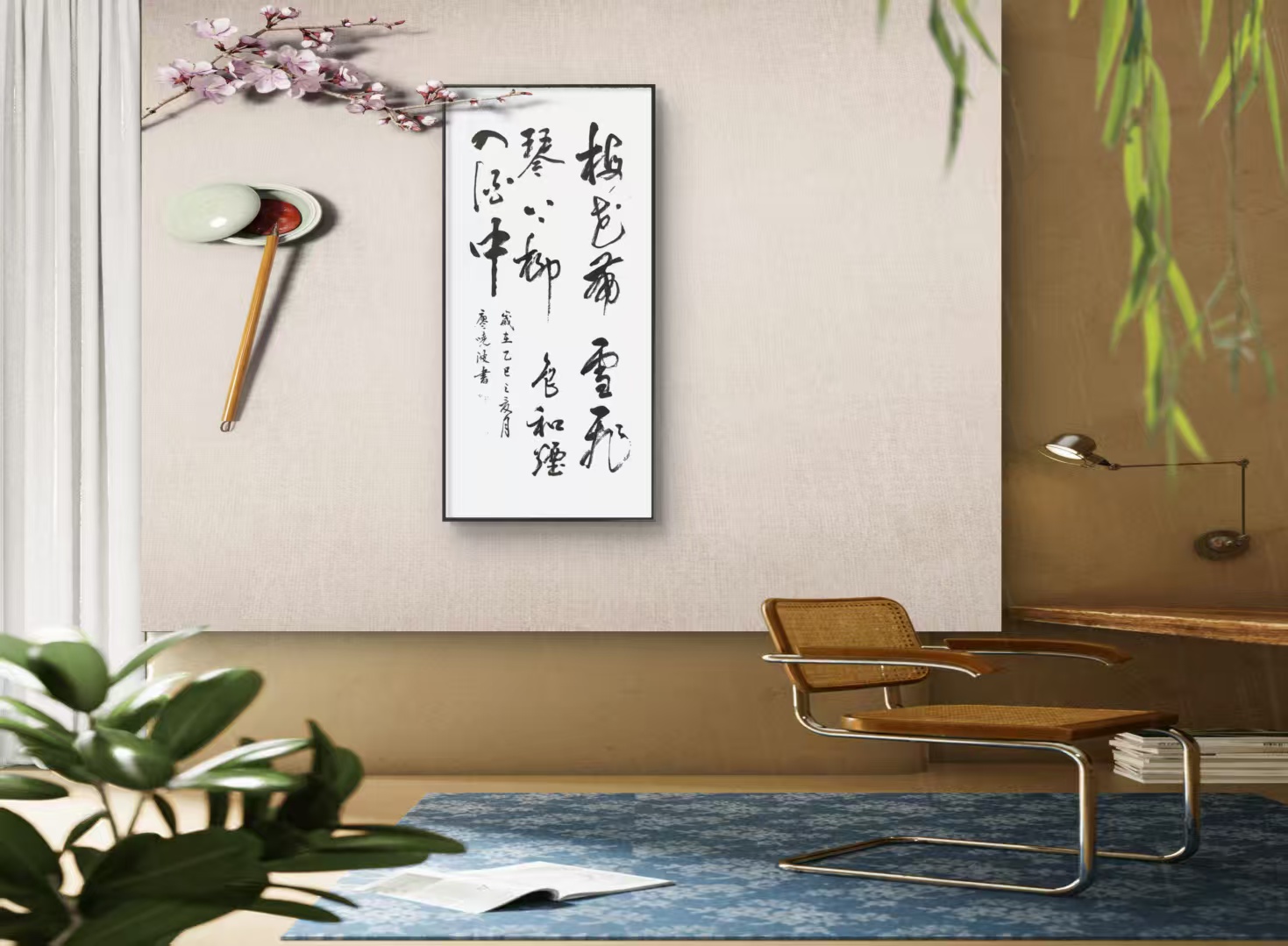 榜书、行书作品多次收录在湖湘文化精选作品集中,还有代表作毛笔书法作品《风生水起》,《北国风光》,《家和万事光》,《舍得》,《室雅兰香》,《烟云入画》,《定风波》等等,先生的长卷书法作品、竹简、撰刻、木雕作品被多家国内外纪念馆、艺术馆,寺院,亭阁、碑林等单位和政要人员永久珍藏。书画作品参加全国省市书画作品展览三十余次!