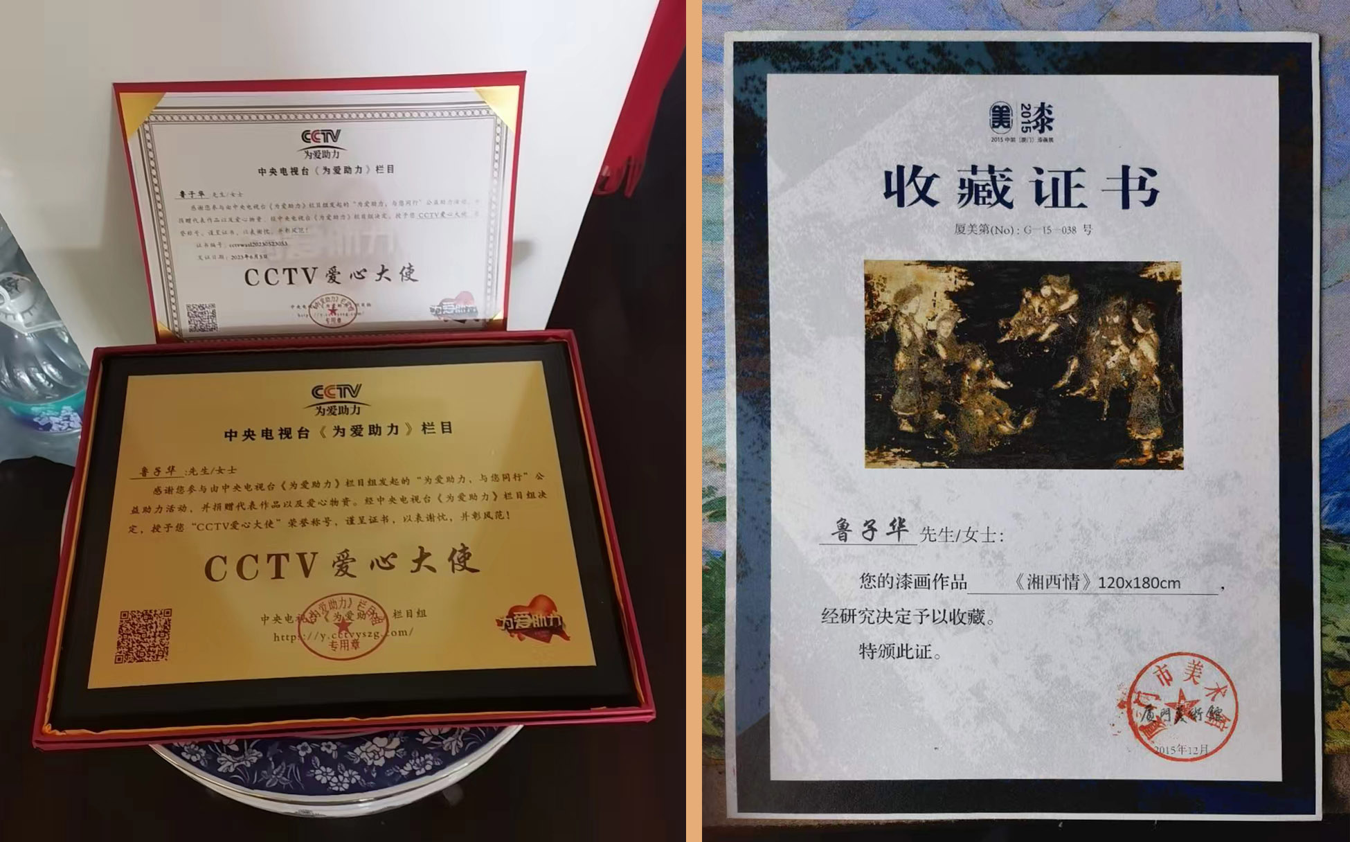 1996年至2016年中央電視豪《翰墨戲韵》欄目四次專題報導《魯子華繪畫藝術人生》。2015年參加中央電視壹向新疆少數民族地區捐畫活動。