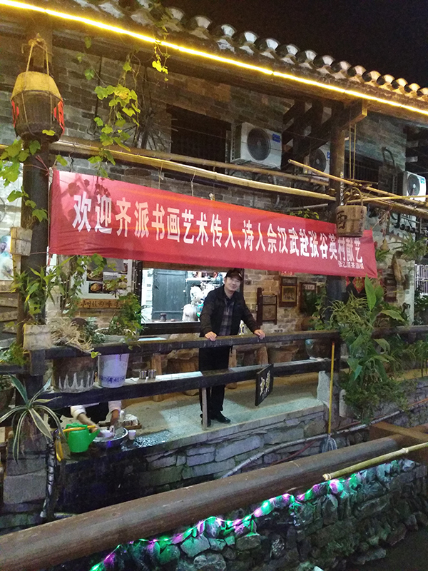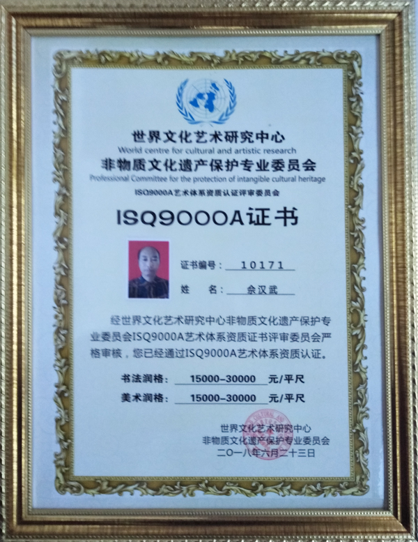 佘汉武:湖南长沙望城人,生于1968年11月。小学文 凭。二十岁时偶然遇上湖南大学副校长谢彦玮教 授,教 授视为奇才。并言:幸亏遇上了我,不然,你一辈子浪费了。当你有成就时就会记起我。。。送其至老友湖南大学岳麓书院研究室主任谭修教 授门下学习诗词联曲赋,同时拜刘家传先生(原总理朱 镕基先生的老师)学习古文学,前后五年。九三年在湘潭白石文艺开发公司工作时拜齐白石大 师的三孙齐金平先生学习齐派画,画虾得齐派不传之妙。九五年入湖南老画家伍祥干先生门下学习花鸟画。同年,在当代诗坛巨擘熊东遨先生的关心下,到湖南机械进出口集团(公司)工作。近距离向先生学习诗词联曲赋的创作(熊东遨先生是湖南机械进出口集团(公司)的领 导人之一)。。。